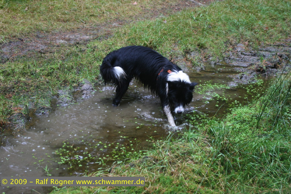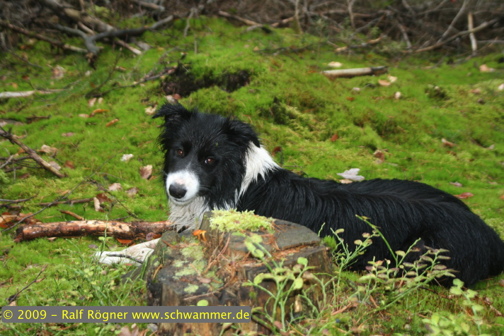 An der Stelle, wo ich eigentlich Herbsttrompeten vermutete stiess ich auf die Überreste von fünf riesigen Steinpilzen, die wohl innerhalb von einer Woche gewachsen und ebenso vergammelt sein müssen. Ich durfte mich dann trotzdem über drei Steinpilze, Maronen, Pfifferlinge (!!!), Trompetenpfifferlinge, flockenstielige Hexenröhrlinge, Hallimasch, große Schmierlinge, Sandröhrlinge, Herbstrotfußröhrlinge und violette Lacktrichterlinge freuen. Und meiner Borderdame Molly hat es auch wieder sehr viel Spaß gemacht, wie die Fotos belegen.