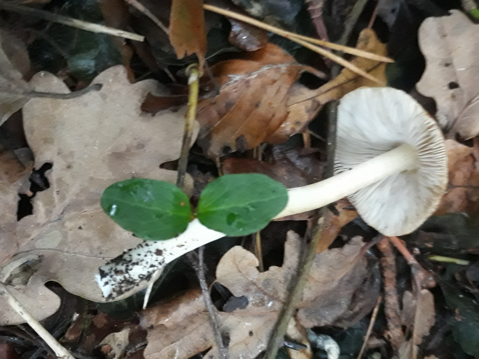 Gewachsen ist er mit zwei weiteren Exemplaren direkt am Weg bei Eichen, Buchen und Haselsträuchern. Ich habe versucht, ihn heil aus der Erde zu bekommen, bin mir aber nicht sicher, ob das ganz geglückt ist. Das, was ich in Händen hatte, hatte zumindest keine Knolle.