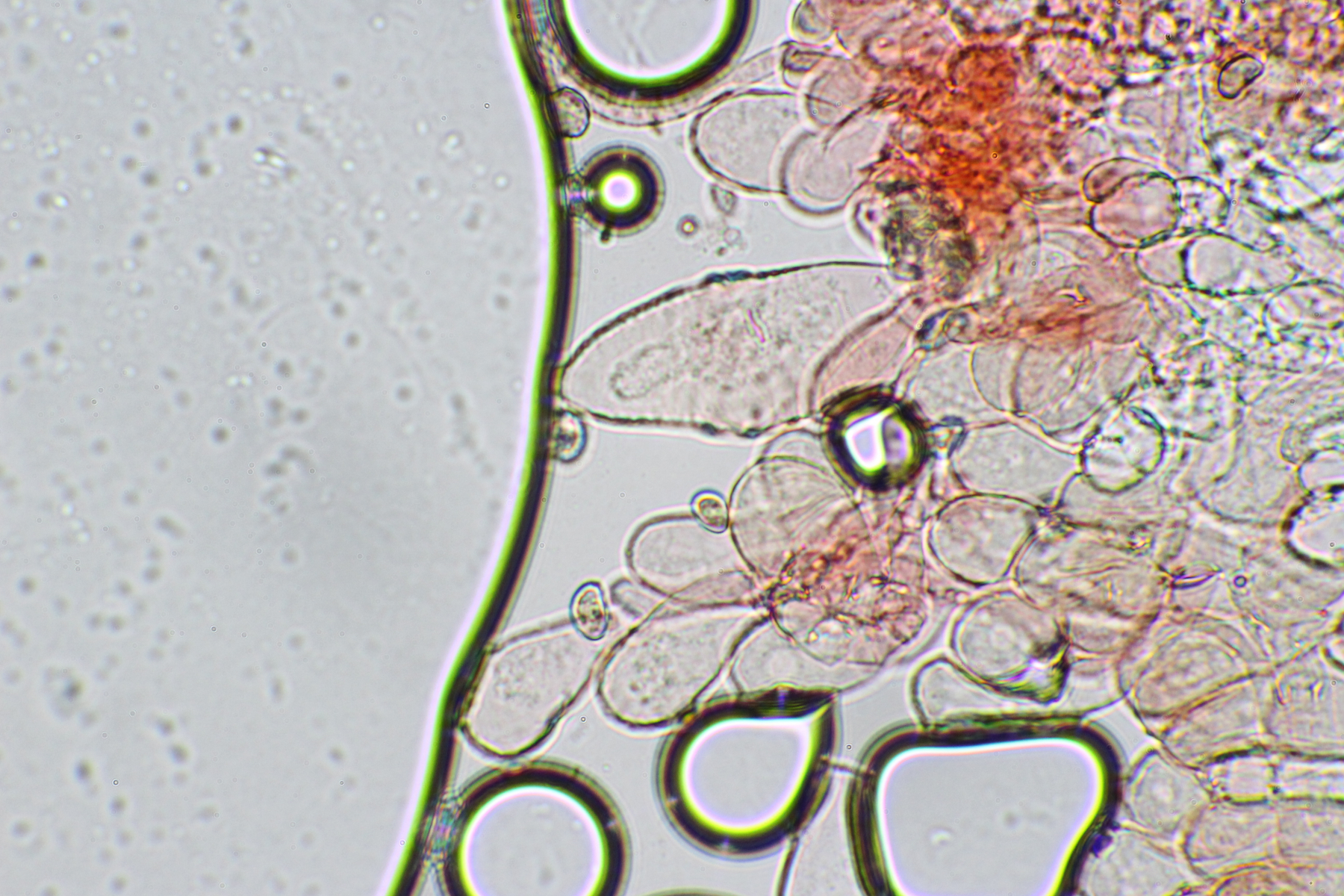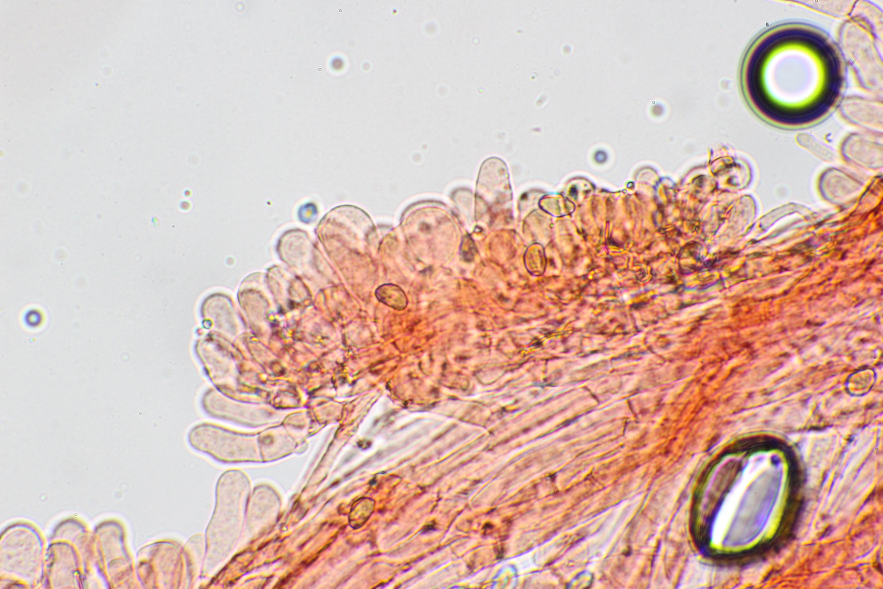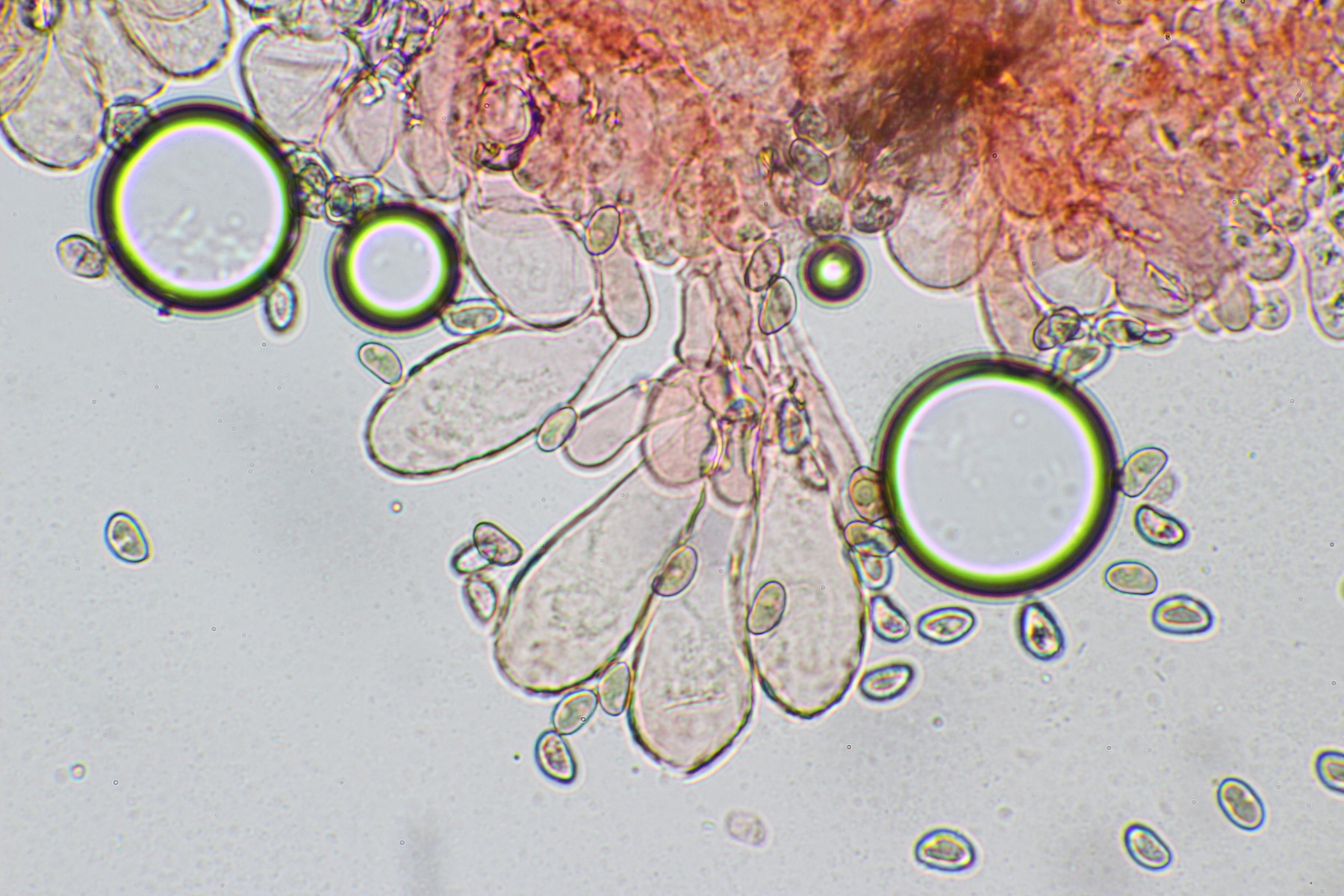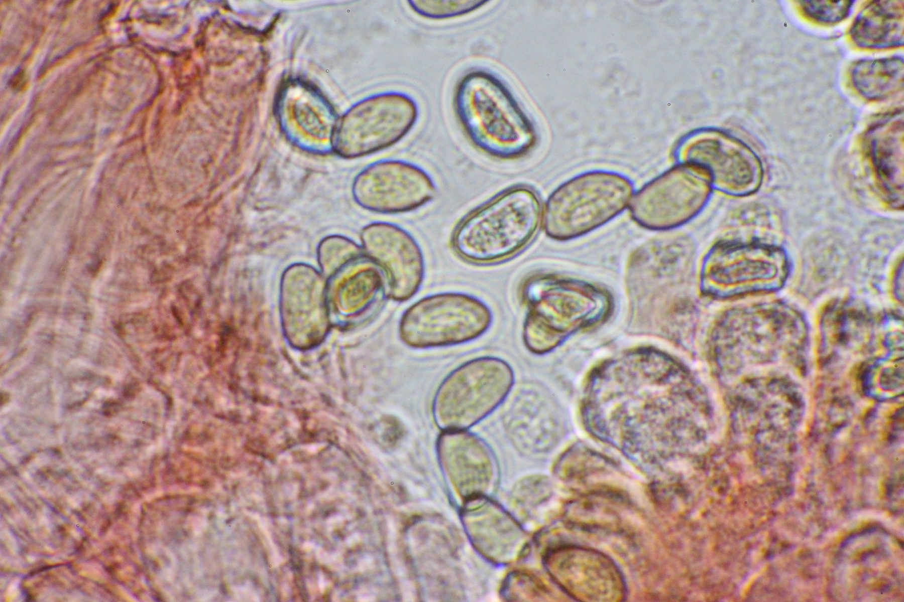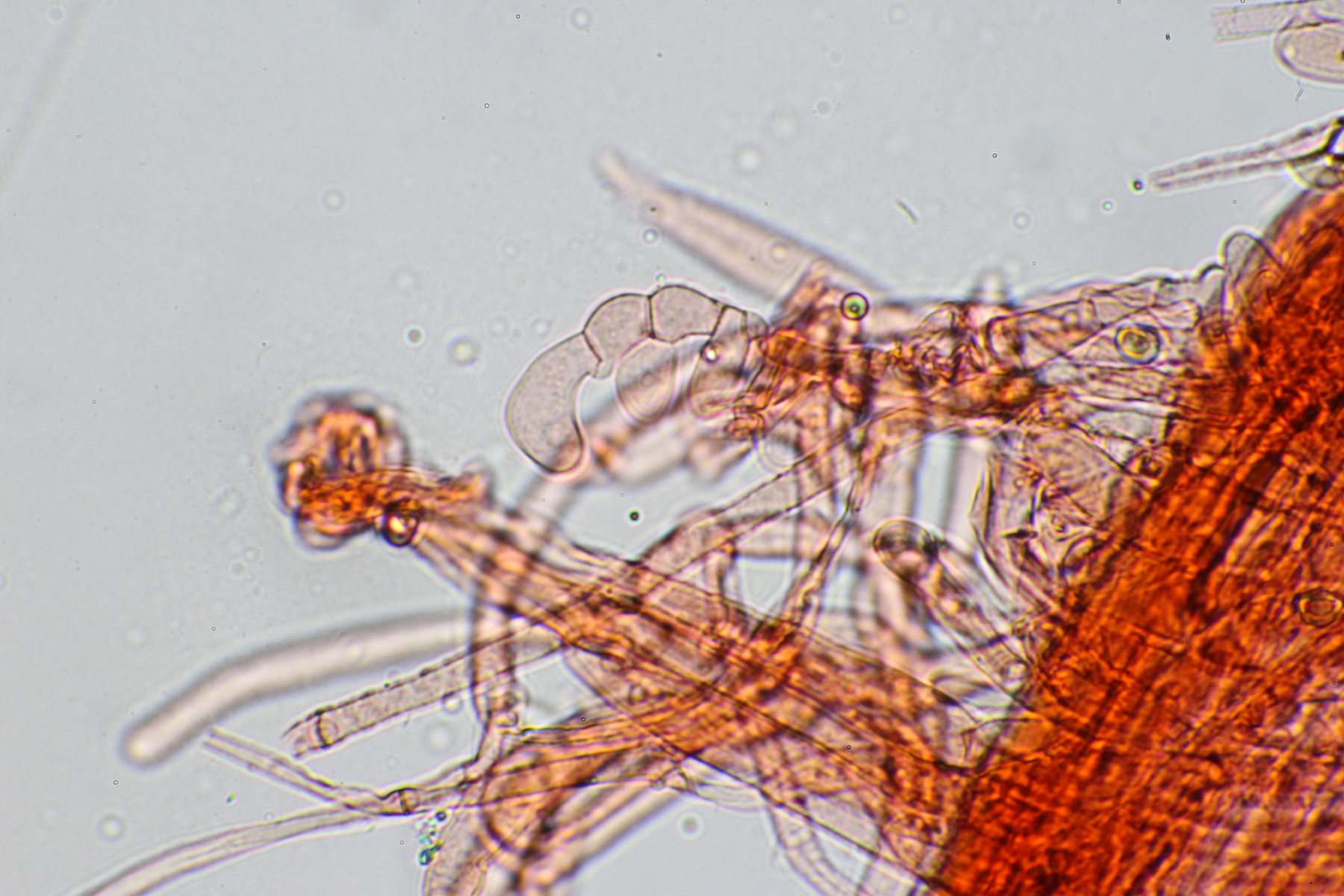 Insgesamt waren die Sporen etwas größer (von ca. 8,5-11). Auch war der Stiel orange gefärbt und war im unteren Bereich braunfleckig und im letzten Abschnitt leicht gebogen. Eine Knolle konnte ich wieder nicht feststellen.