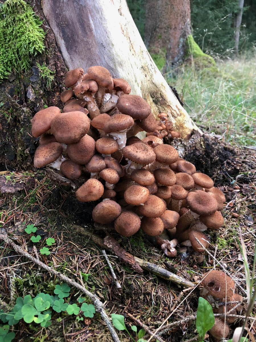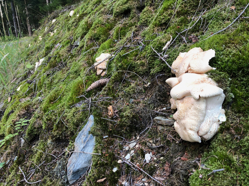 Und dann die Invasion der Albatrellen. So viele Albatrellus spec. (Ich muss erst sehen ob die vom Schaf oder der Semmel abstammen) habe ich selten gesehen. Die Böschungen waren voll von ihnen.