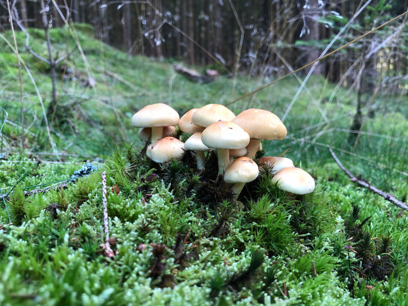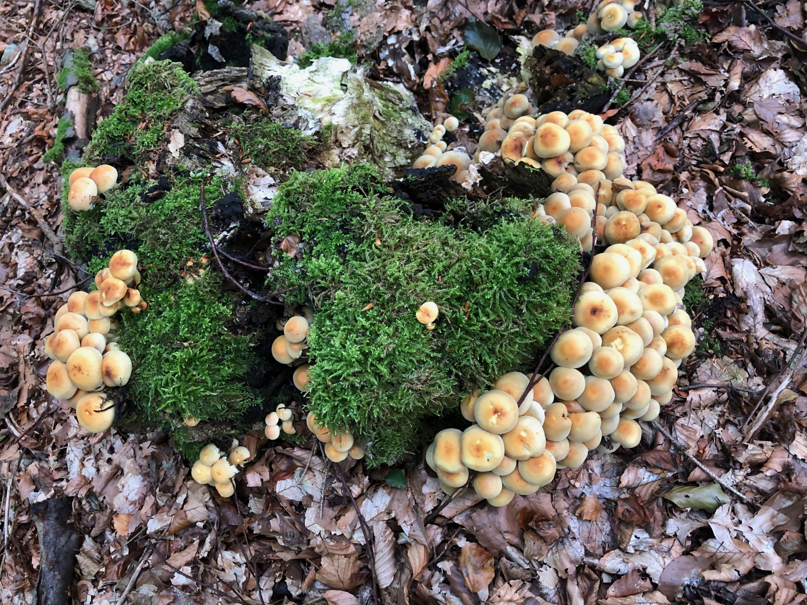 12b Den Grünblättrigen Schwefelkopf gibt es quasi flächendeckend. Gestern sah ich nur Winzlinge, heute ist der Wald voll davon.