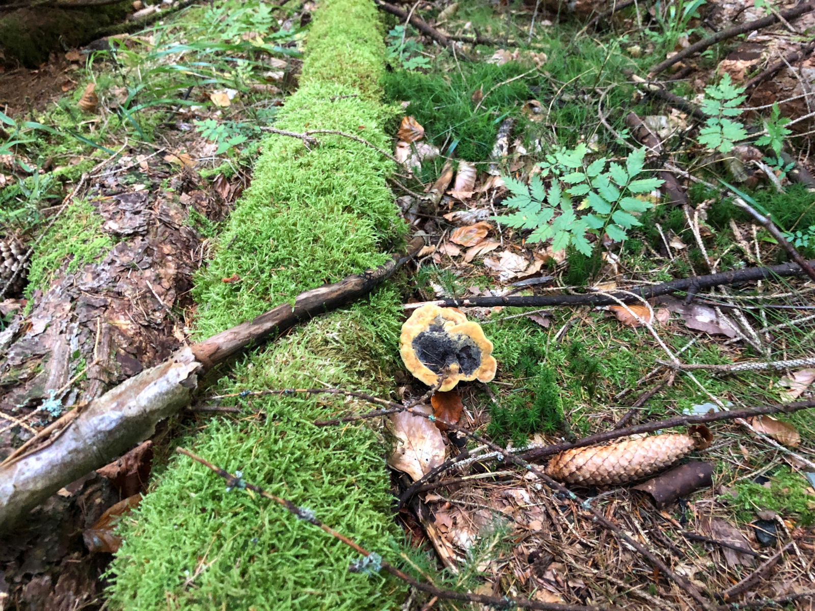20 Abschließend noch ein großer Wolliger Milchling und ein frischer Nadelholz-Braunporling. Den Rest erspare ich euch und mir. All die Scheidenstreifling, Fliegenpilze, Grauen Wulstlinge, Kremplinge, Falschen Pfifferlinge. Ein schöner bunter Pilzwald. Heute früh hatte ich Jörg versprochen, dass sie wachsen werden: et voilà - da sind sie