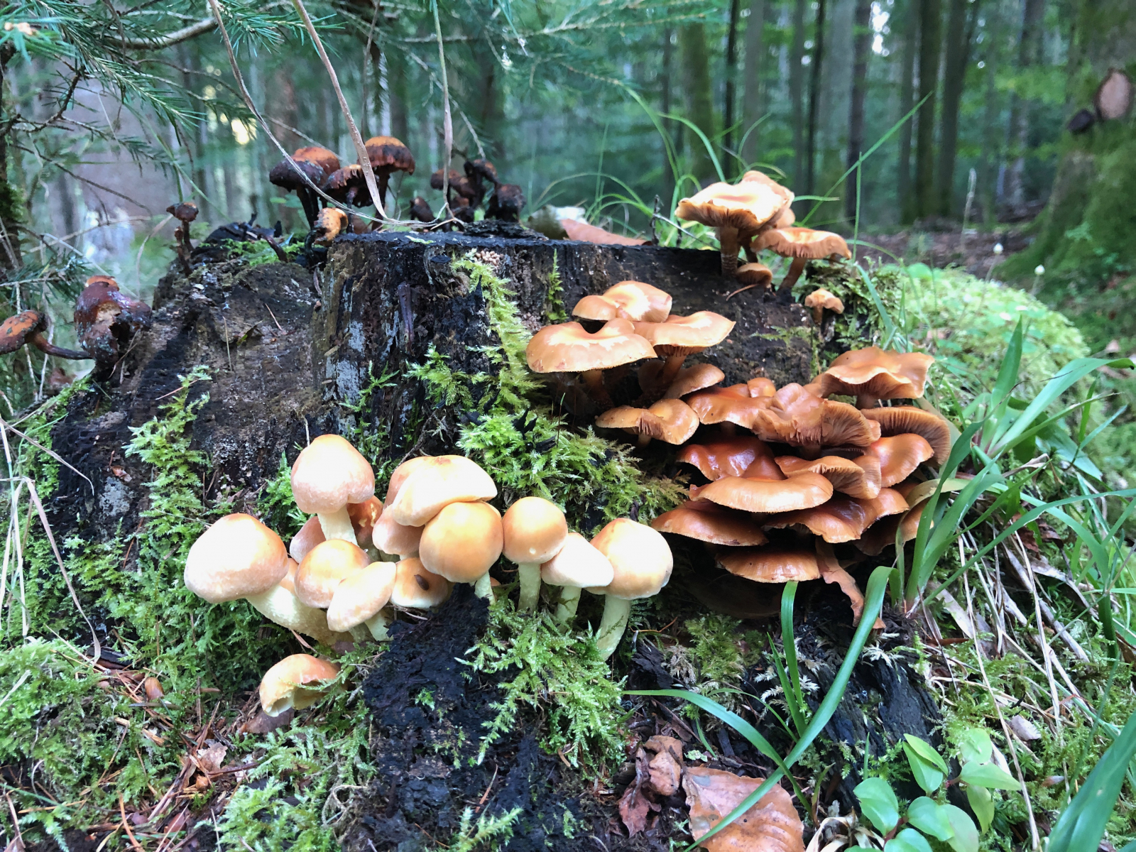 Ganz zum Schluss noch ein kleines Rudel Saprobionten, zu dem ich gar keine Idee habe. Vielleicht habt ihr eine?