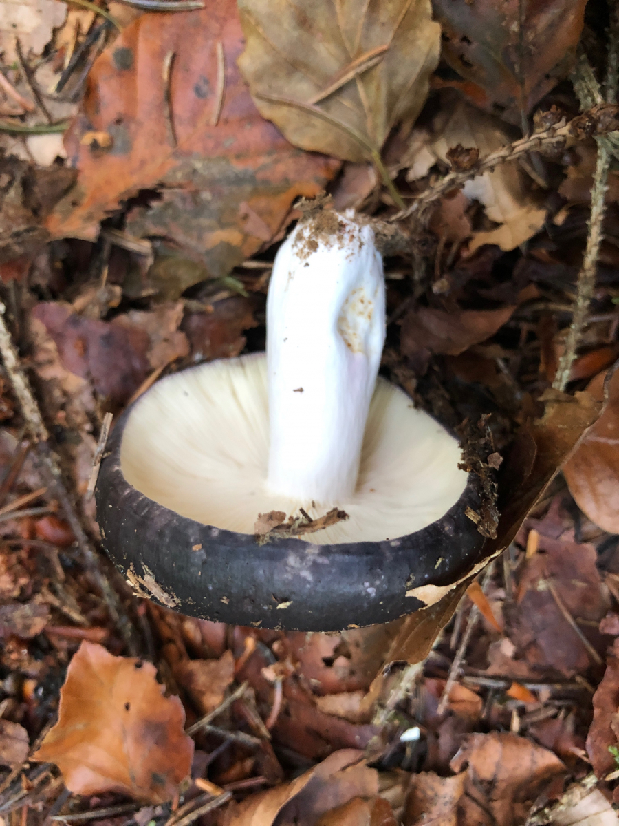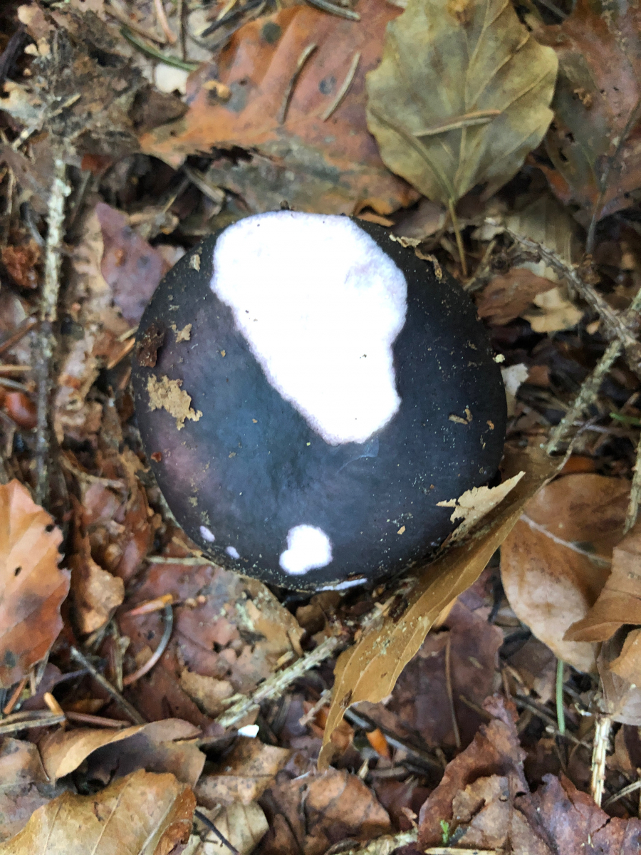 9b Zum zweiten - Nummer 9 - kann ich nichts sagen, außer dass er eine tief dunkelviolette Huthaut hat. Dort wo sei fehlt, hat das weiße Fleisch einen leichten rot-violettstich. Alles andere ist weiß. Gekostet hab ich nach dem ersten Täubling nichts mehr