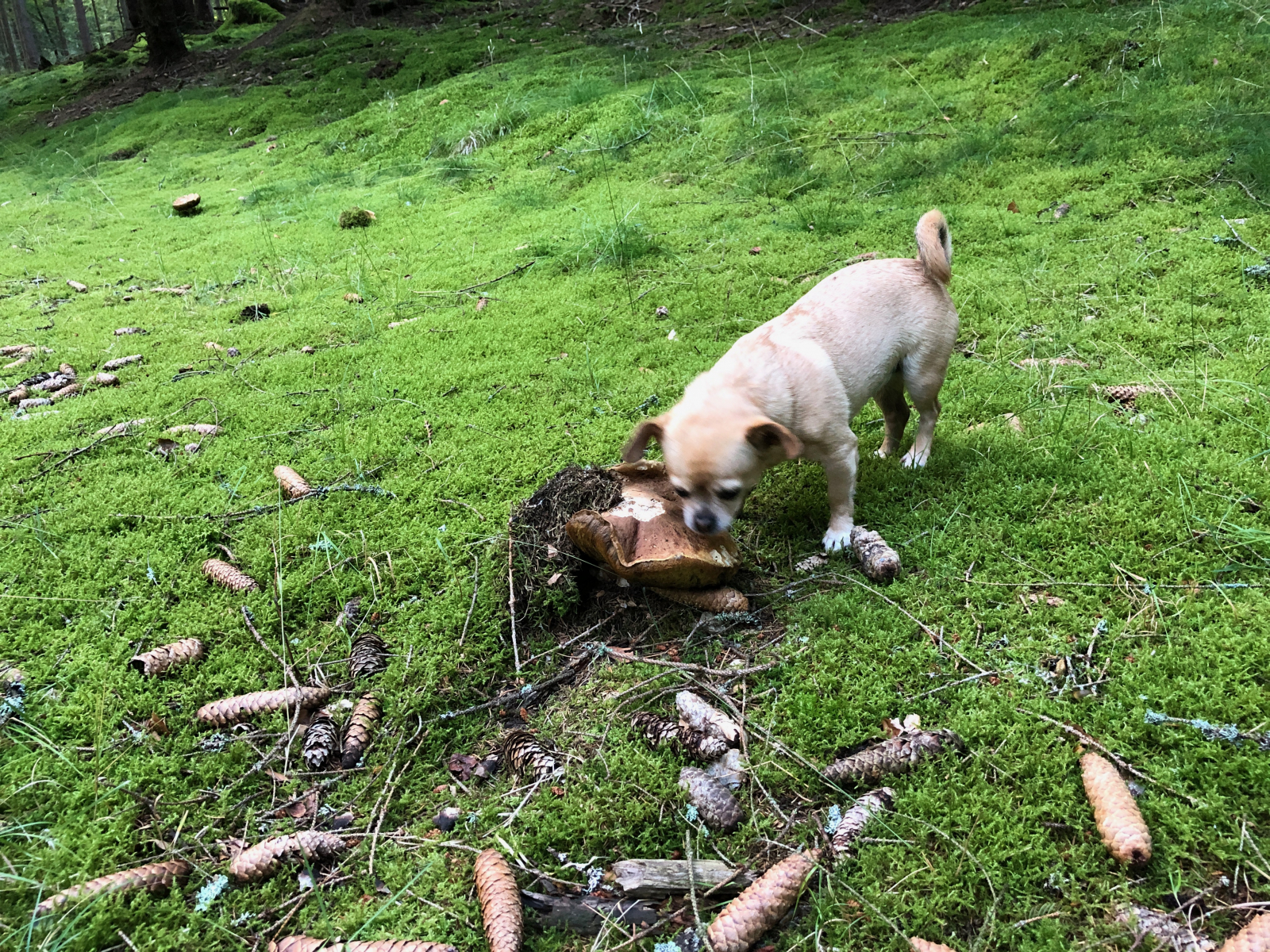 1 Die Gassi-Waldrunde begann mit einem Pilz im Pelz.