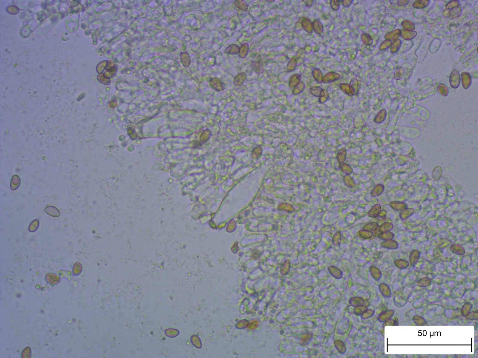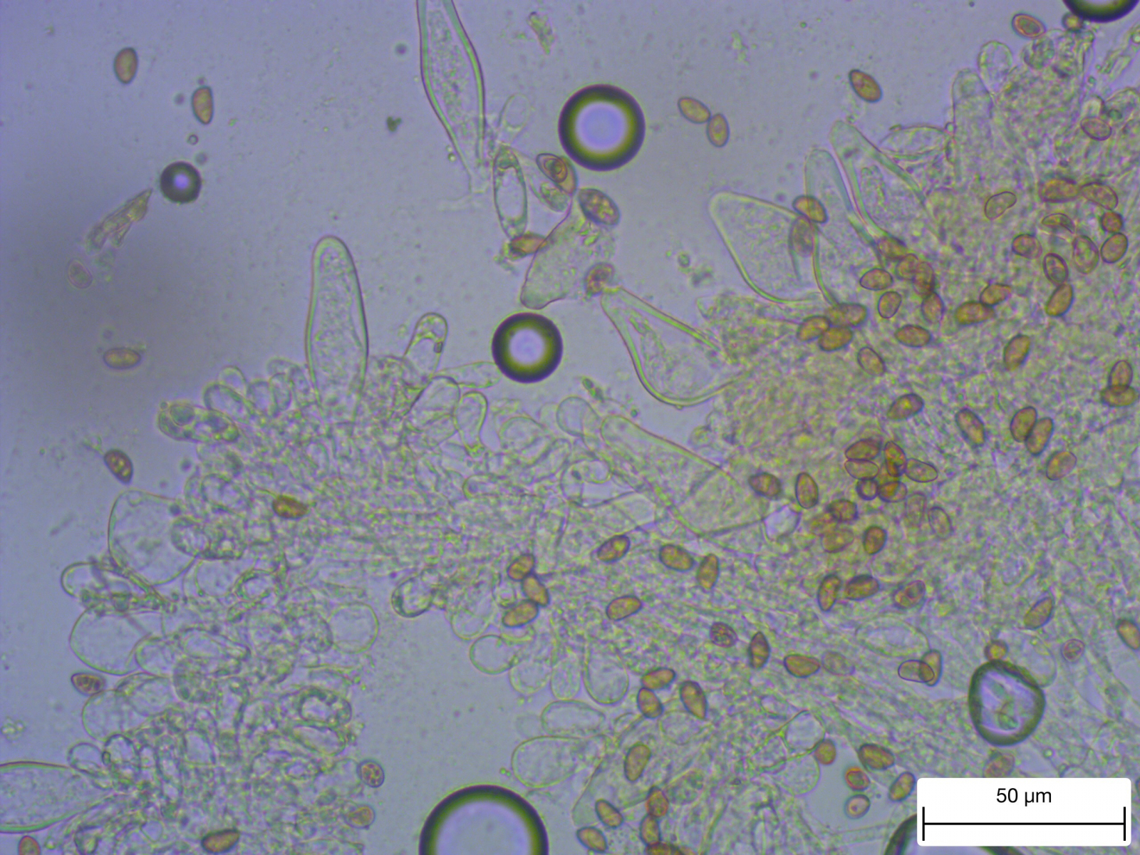 Stiel glatt, 4,5 cm lang, 3 mm Durchmesser unten etwas verdickt nur im oberen Teil Kaulocheilozystiden
