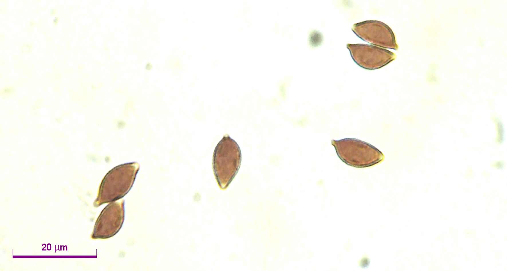 Die Sporen sind dextrinoid, die Sporenmaße sind: