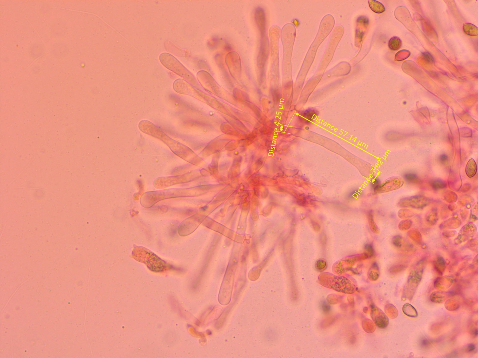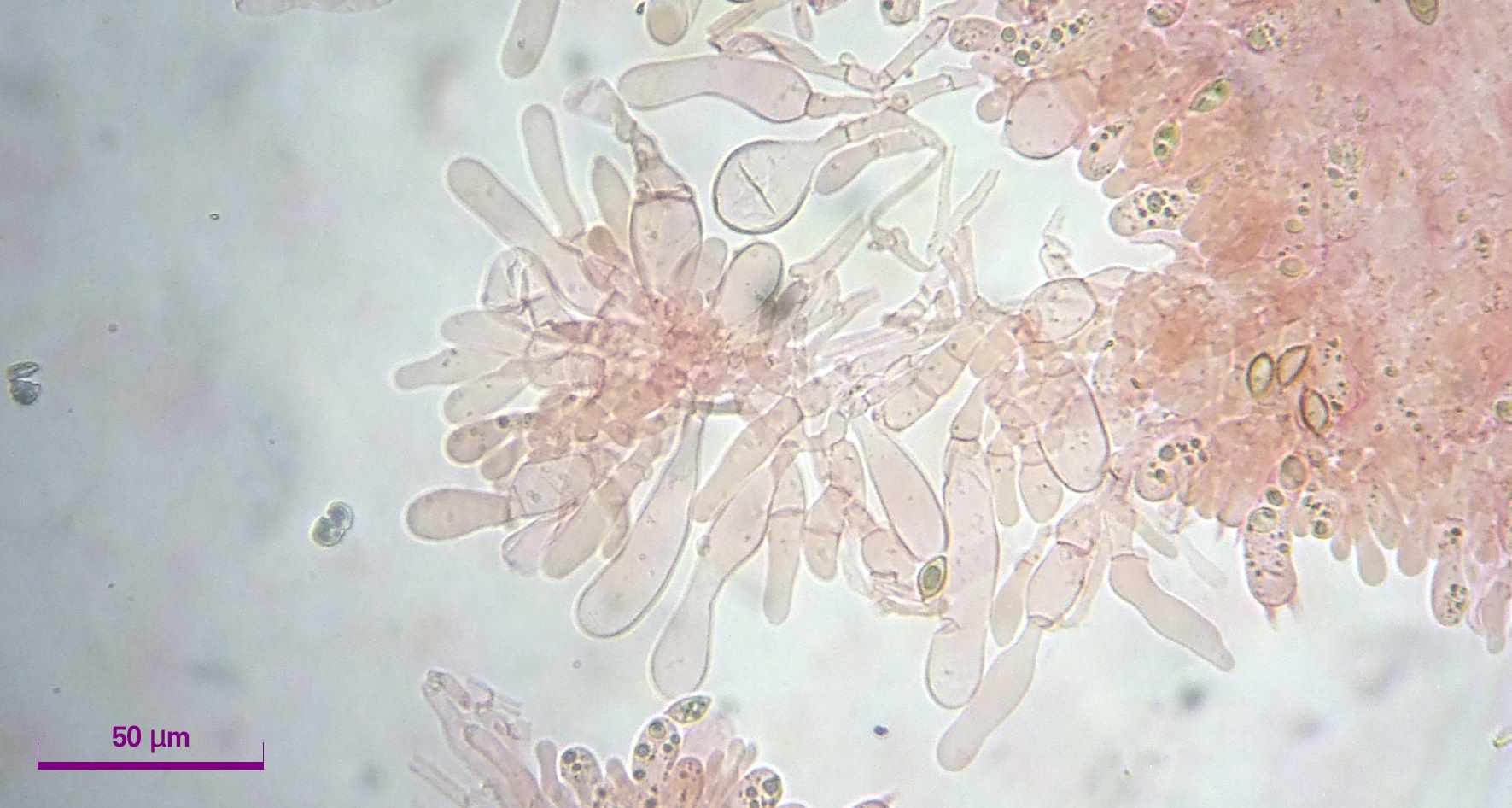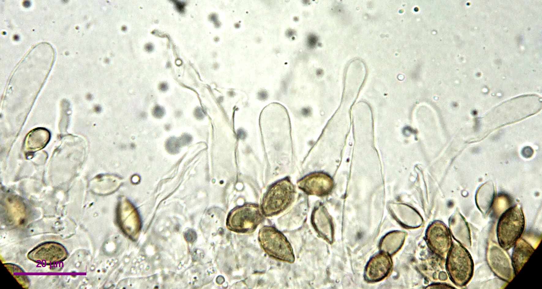 Ich hatte den Eindruck, die Zystiden seien nach wiederholtem Quetschen breiter geworden. Möglich, dass ich mich getäuscht habe.