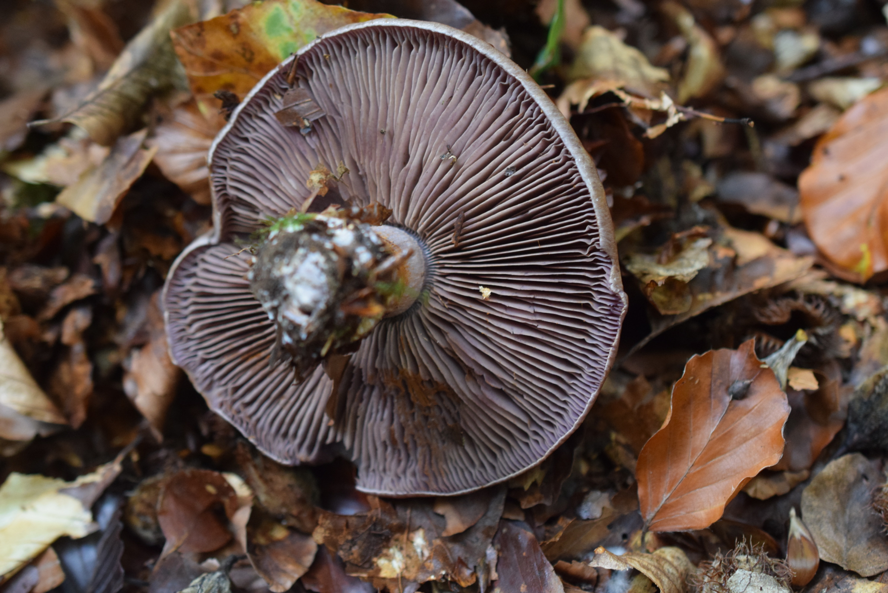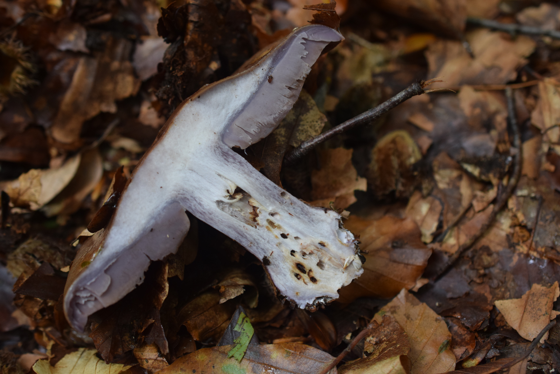 1. Cortinarius Geruch Parfümiert ( sehr an Nebelkappe ähnlich ) Geschmack leicht bitterlich . Buche in nähe aber ca unten 15 Meter auch ein paar Fichte . Es war nur 3 Frk. ein etwas jünger als andere zwei . Glaube das alle 3 gleiche Art sind