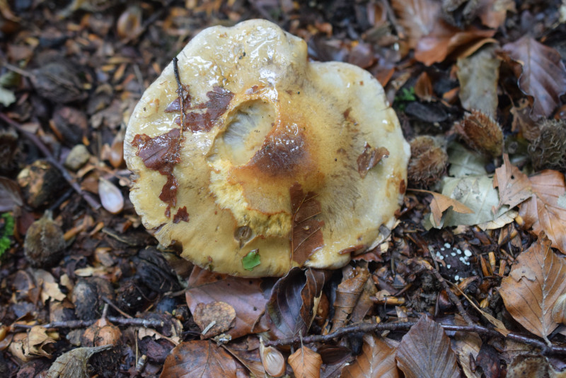 5. Lactarius an Lactarius nr 4 sehr ähnlich . Diese hab in ein ganz anderes Wald gefunden , Buche , Fichte und viele junge Erle . Ob ist das gleiche wie nr 4 . Hat auch KOH Reaktion positiv , gleich wie nr 4. . Geruch komisch ( nach was ? ) Geschmack etwas Mild , nicht so bitterlich . Unterscheid von nr 4 ist auch in Zonierte Hut. Es war nur 3 Frk