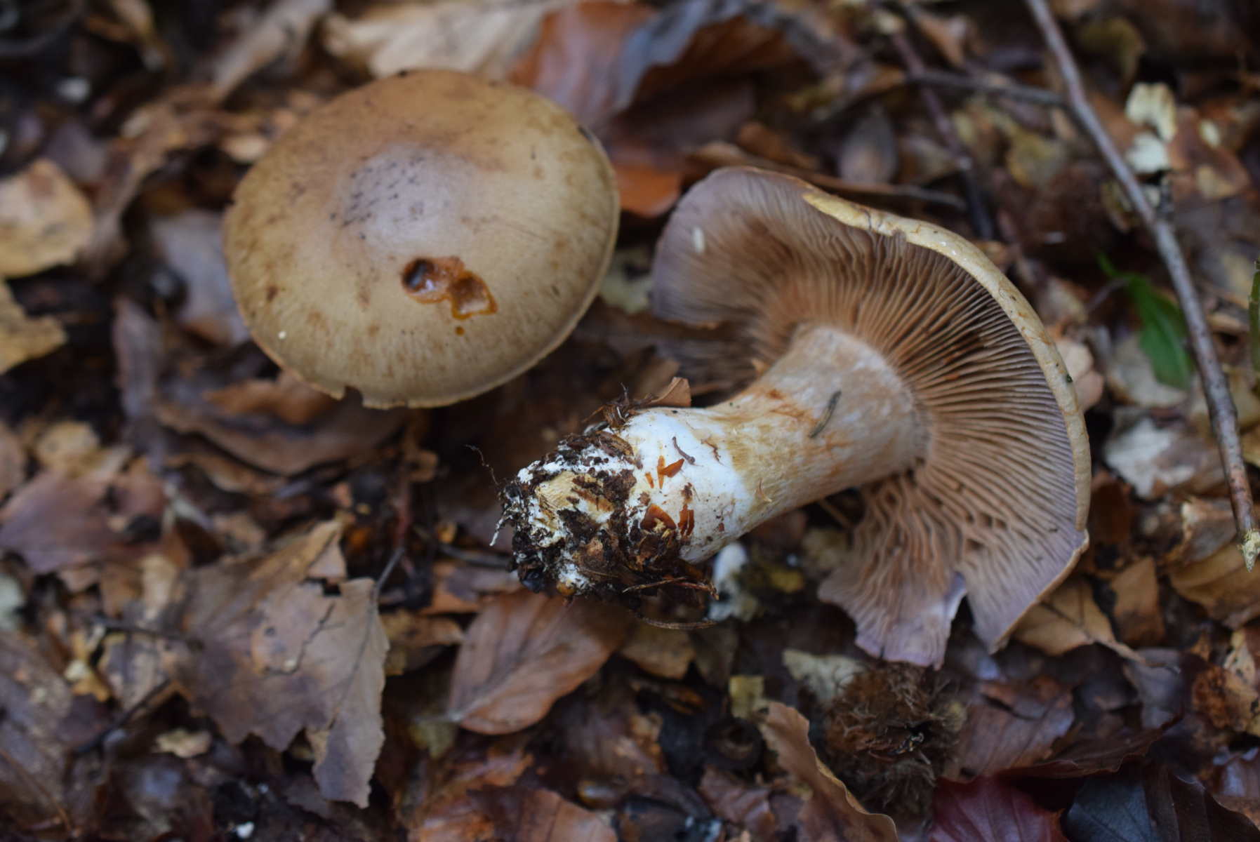 2. Cortinarius sp Gleich neben Cortinarius nr 1 gefunden , mehrere Frk zerstreut ( Buche in nähe etwas weiter Fichte ) . Hab kein besonderes Geruch gefunden , aber Geschmack ist komisch sauer , noch nie etwas ähnlich gekostet