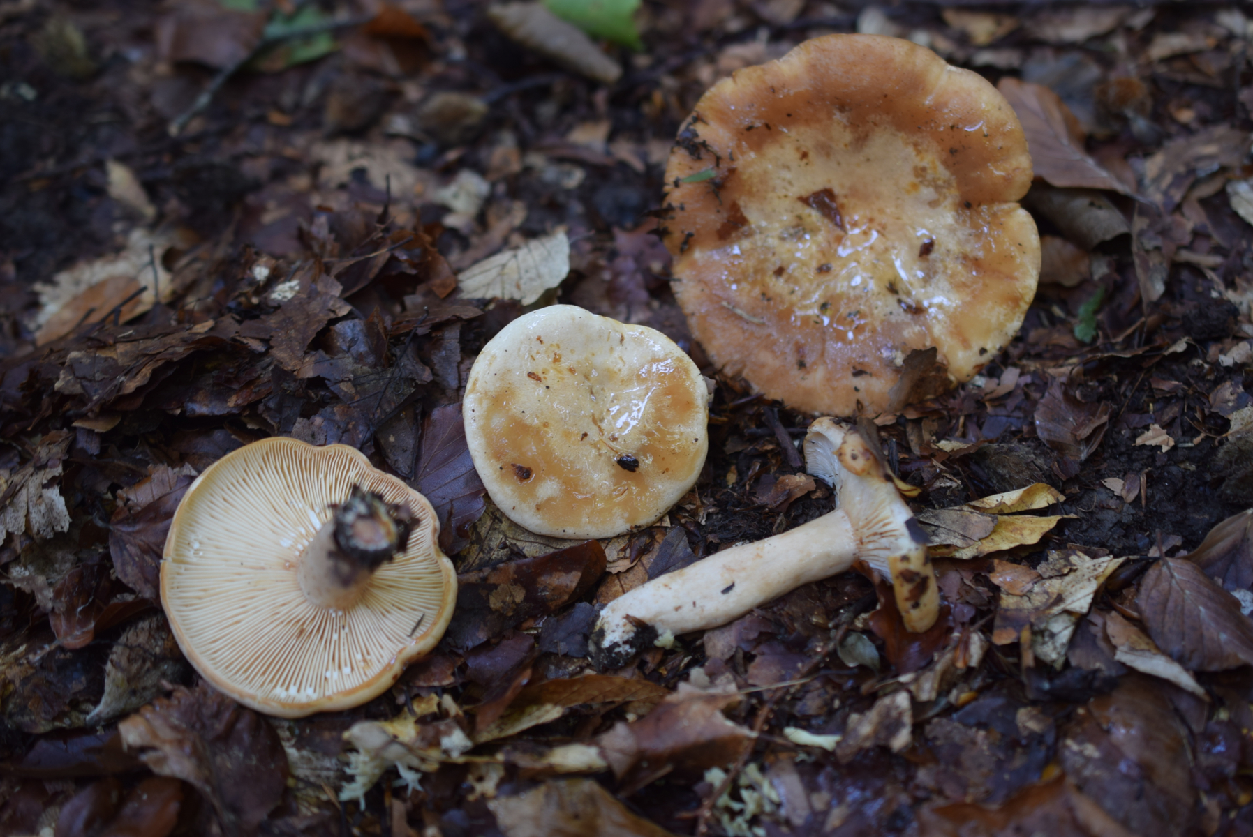3. Lactarius Geruch angenehm , Geschmack leicht Bitterlich . Unten Buche ( Fichte etwas weiter ) Sehr viele Frk zerstreut