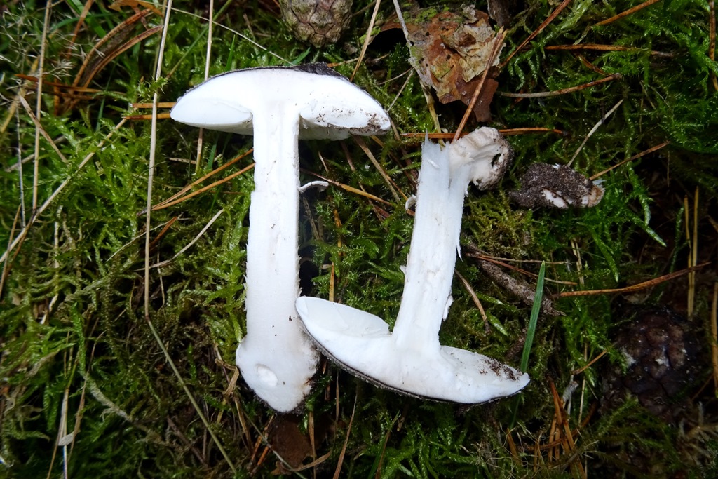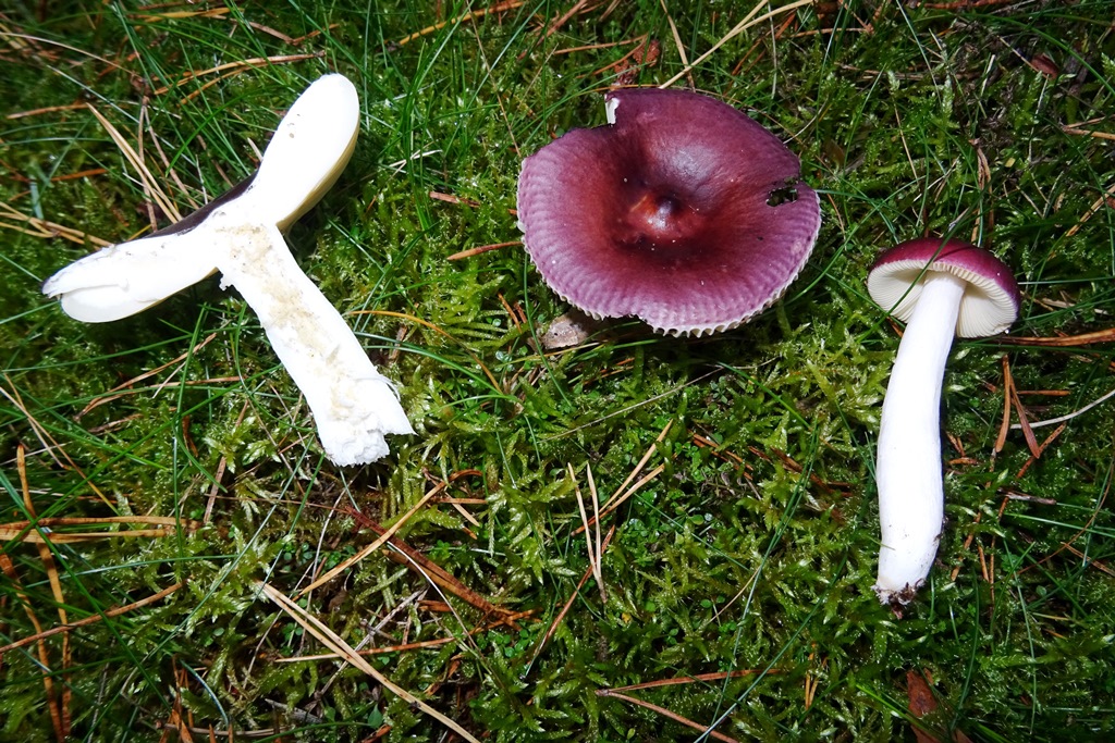 Den ersten würde ich für einen Buckel-Täubling (Russula caerulea) halten.