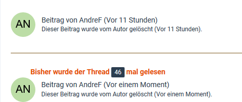 Immer wieder werden Antworten von mir gelöscht, ich mache das nicht.