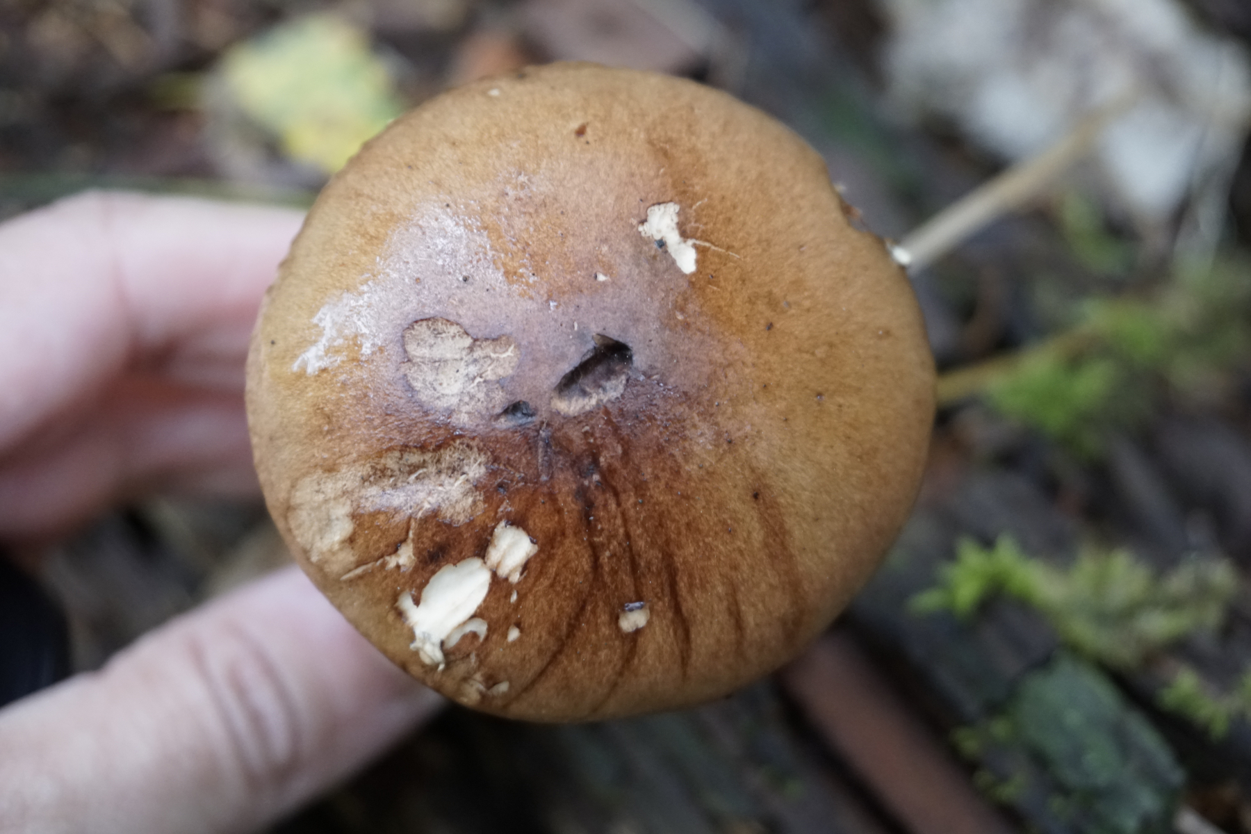 Davon unabhängig eine einschätzung zu deinem Pilz: Das dürfte ein nicht ganz typisch ausgeprägter Fruchtkörper von Tricholoma fulvum s.l. (Gelbblättriger Ritterling, heißt auf deutsch deswegen "Gelbblättrig", weil die Lamellen weißlich bis bräunlich fleckend sind) sein. Siehe gelbliche Stielrinde.