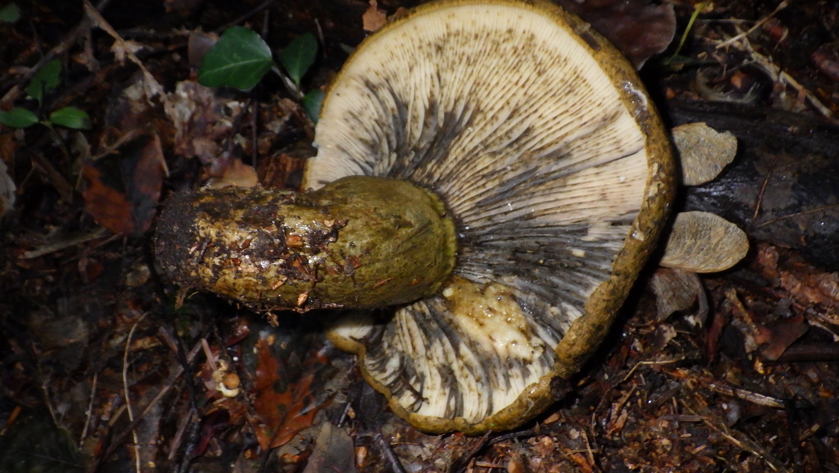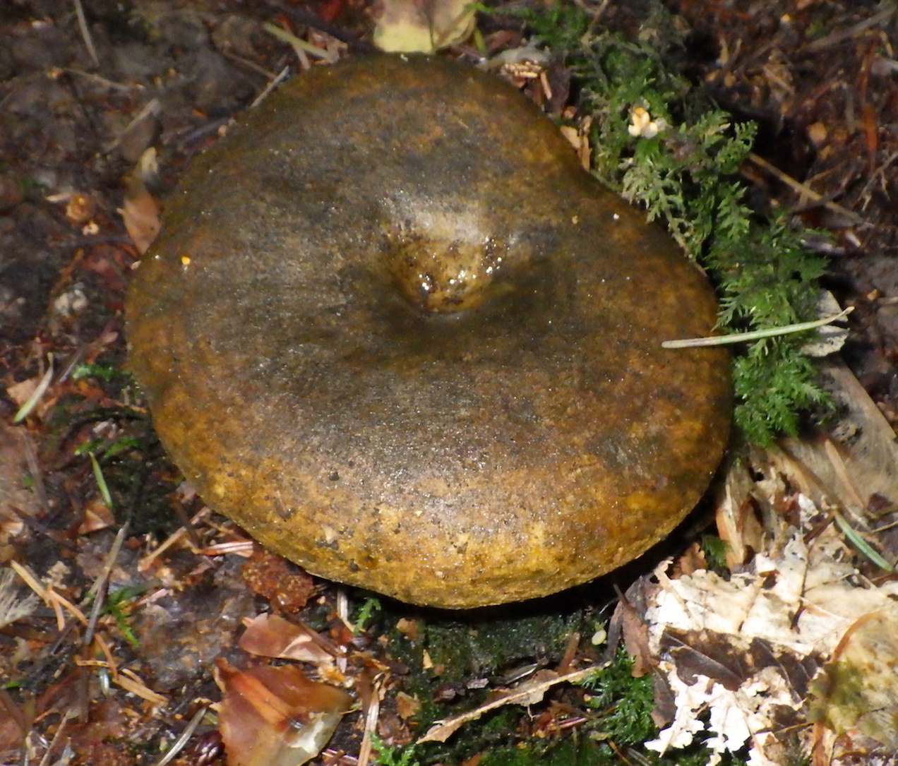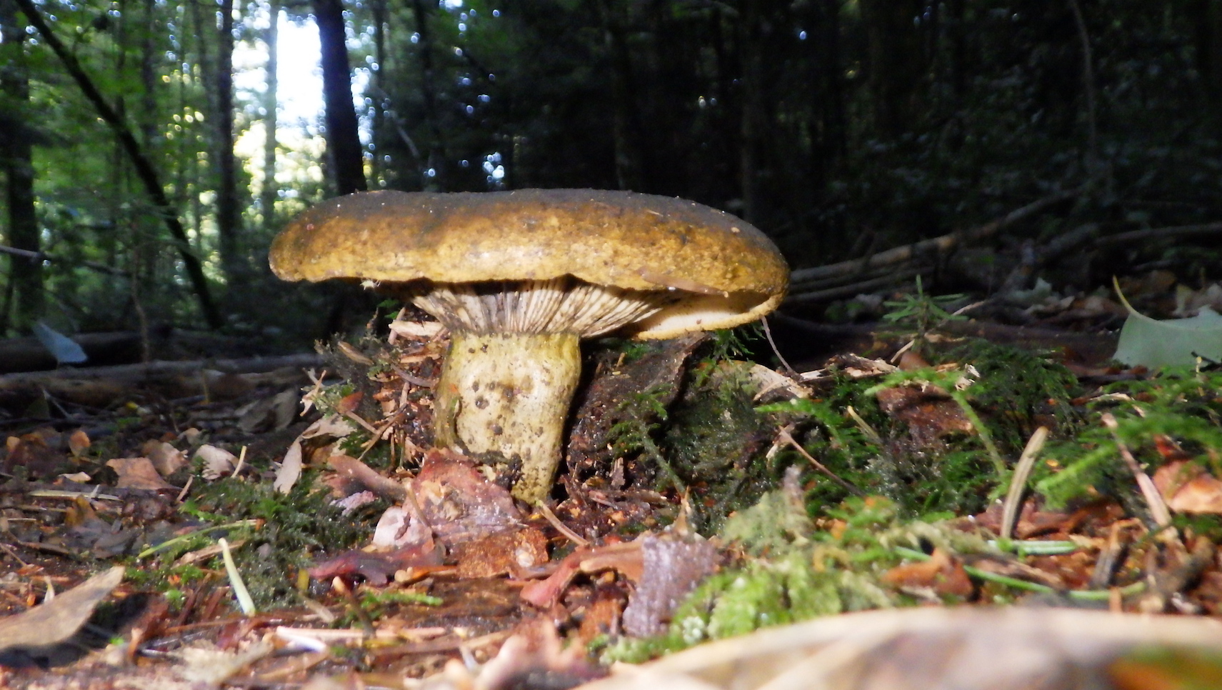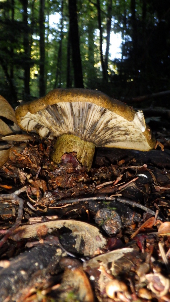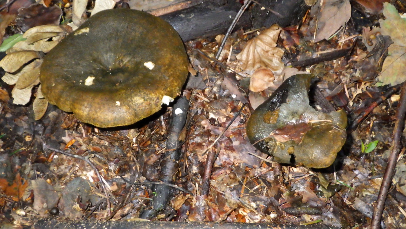 Diese sehr dunkelgelb-braunen Pilz mit kurzen dicken, schmutzig gelbbraunen, brüchigen Stielen habe ich heute im Maiengrünwald entdeckt. Die hellen Lamellen verfärben sich offenbar auch schwarz. Habe bei den Täublingen dazu nichts passendes gefunden. Mehrere Pilze mit gleichen Merkmalen waren in diesem Mischwald nahe zusammen.