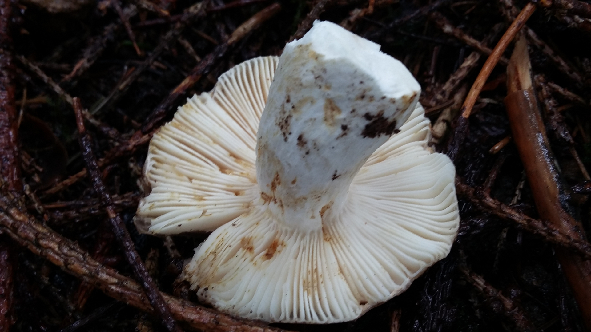 Auf jedenfall Täublinge. Geschmack war mild. Ich fand sie von oben sehr Steinpilzähnlich. Im Stiel sind sie so "gekammert". Geruch neutral. Teilweise bräunliche/gelbliche Flecken am Stiel und an den Lamellen. Die Huthaut war beim Abziehen ziemlich dick im Vergleich z.B. zu Frauentäublingen. Die Huthaut war nass ziemlich schleimig.