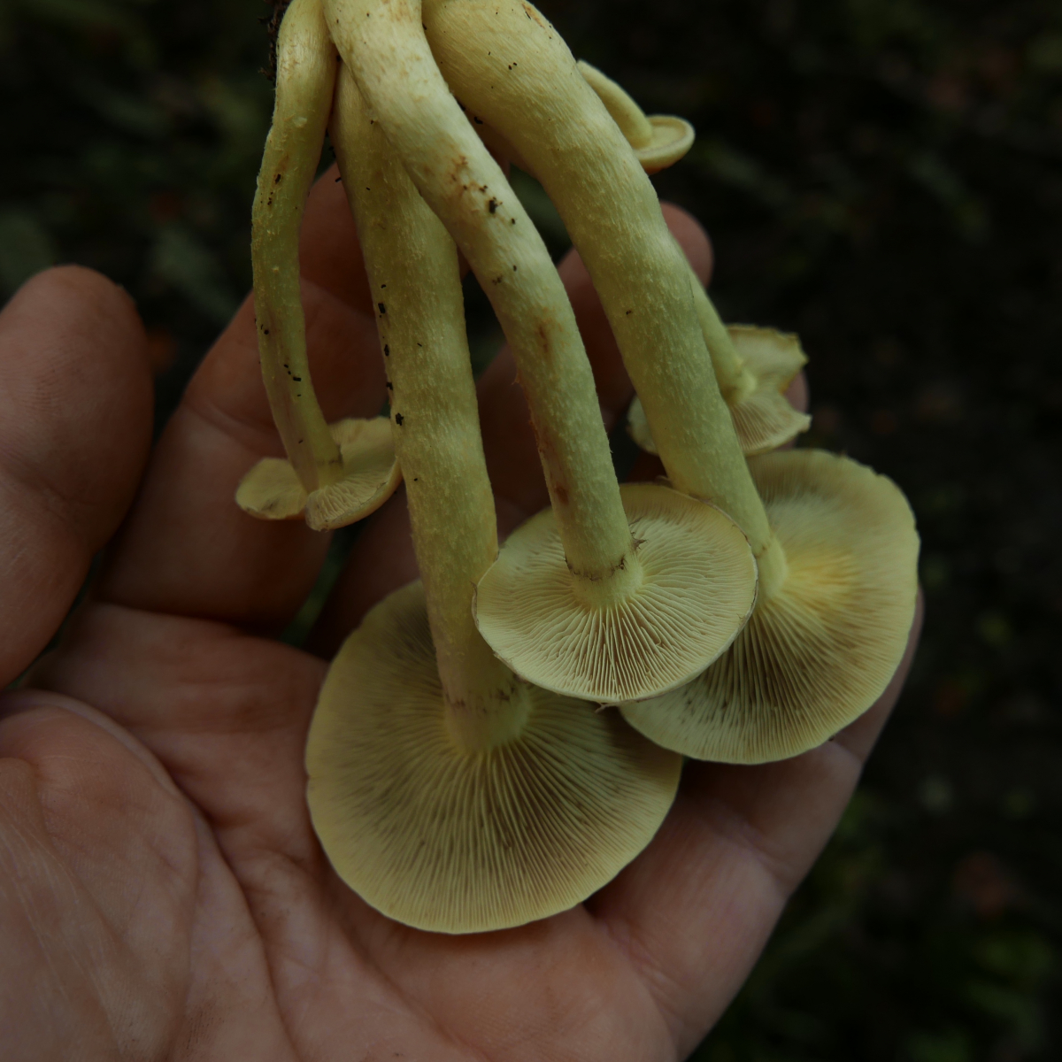 20. Grünblättrige Schwefelköpfe, Hypholoma fasciculare. Endlich konnte ich mal einigermaßen die grüne Farbe einfangen