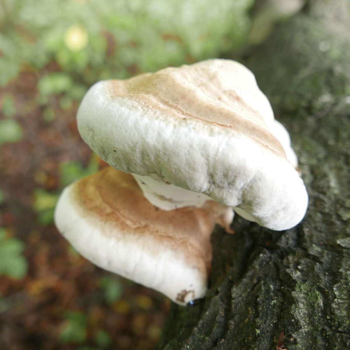 16. Ein knackfrischer Riesenporling, Meripilus giganteus an liegendem, nicht mehr zu definierendem Stamm