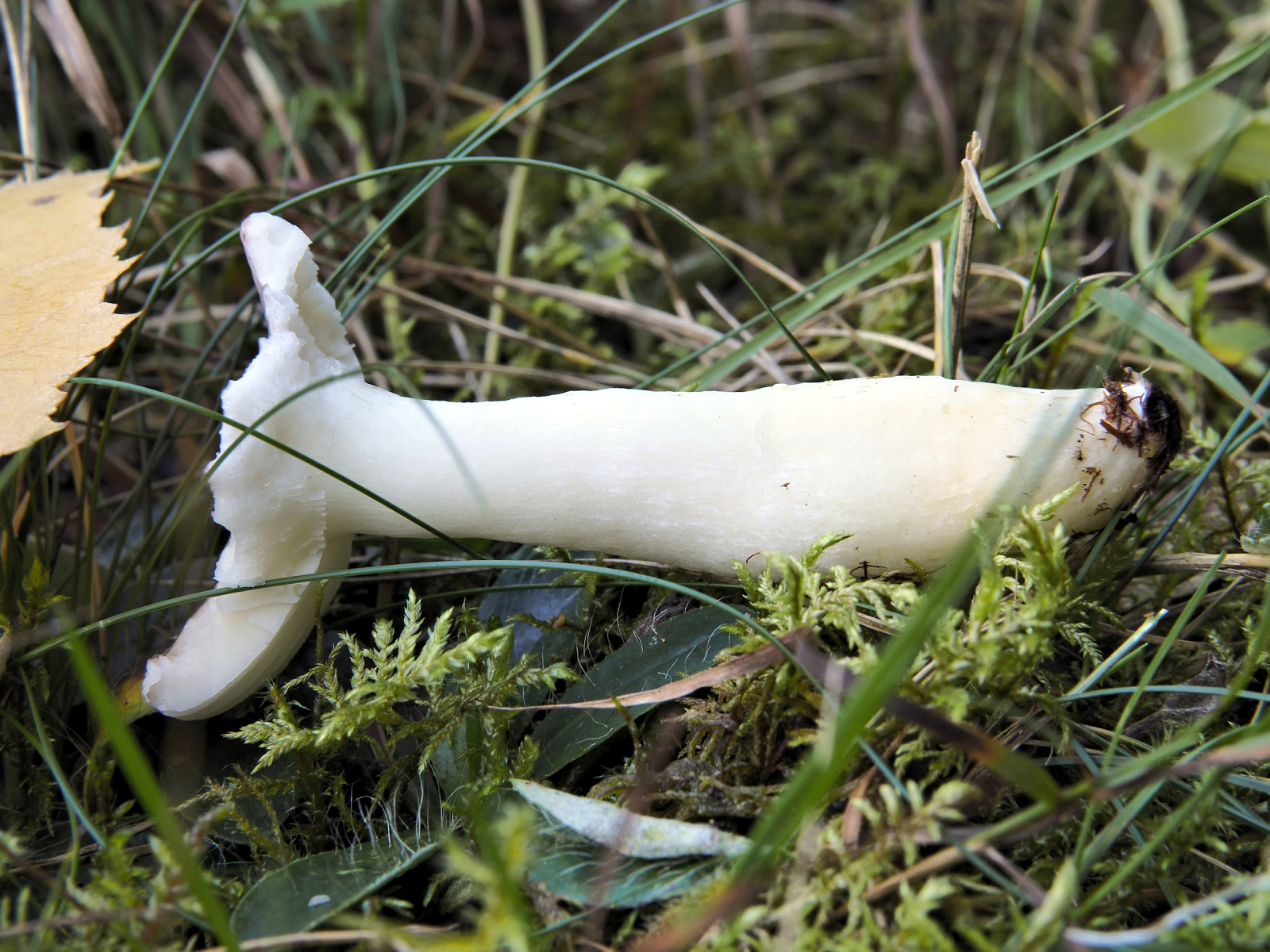 4) der Stiel dagegen auffällig lang, auch rein weiss, sehr zerbrechlich
