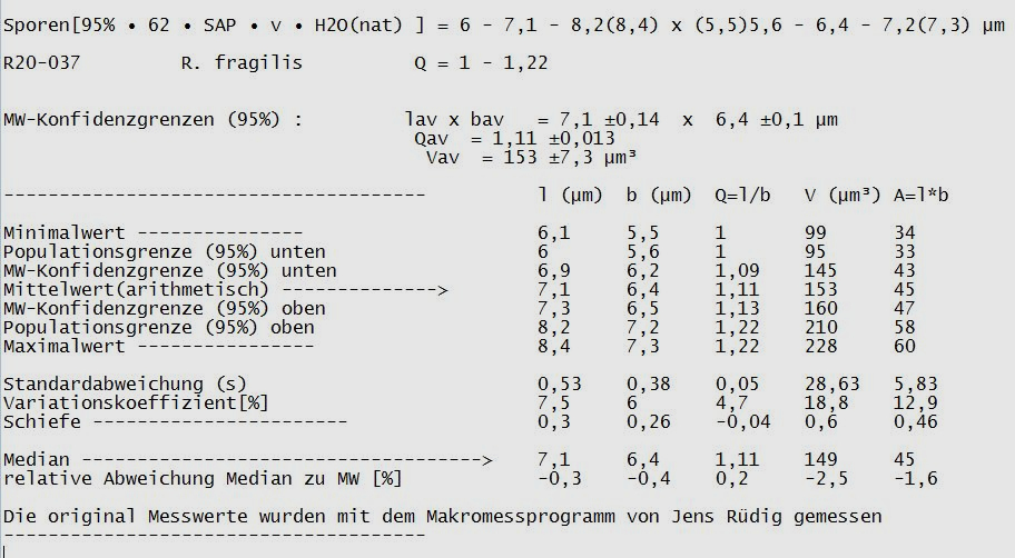 16) Messprotokoll, das Sporenmass dürfte ein wenig grösser sein, aber passt