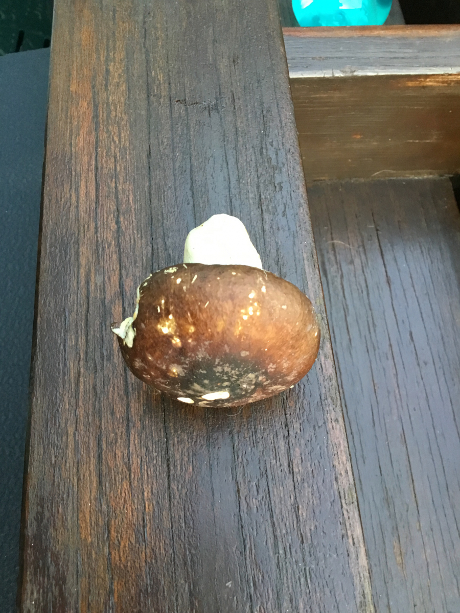 Die Huthaut sollte sich abziehen lassen, aber sie war noch nass mit einer Konsistenz wie Gummi