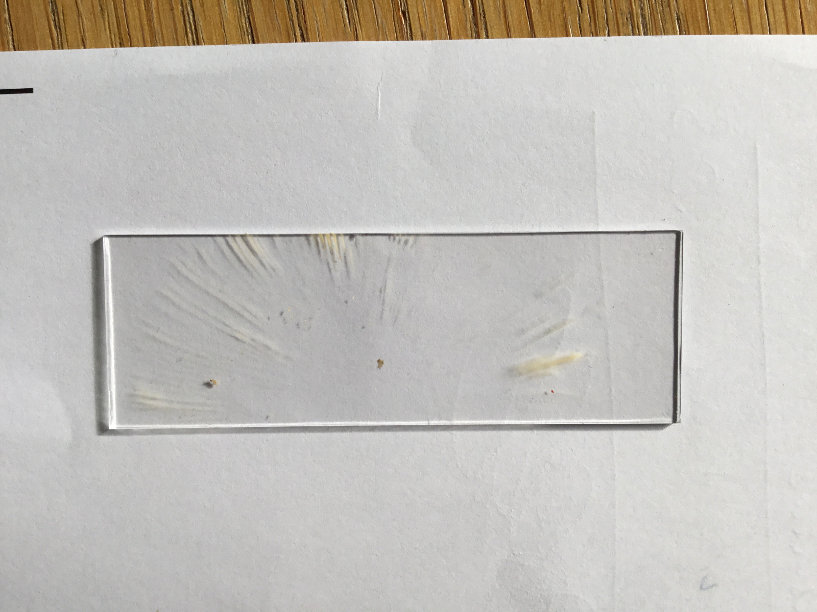 • Huthaut abgezogen, kleines Schnipselchen herausgeschnitten und in Wasser auf den Objektträger gelegt.