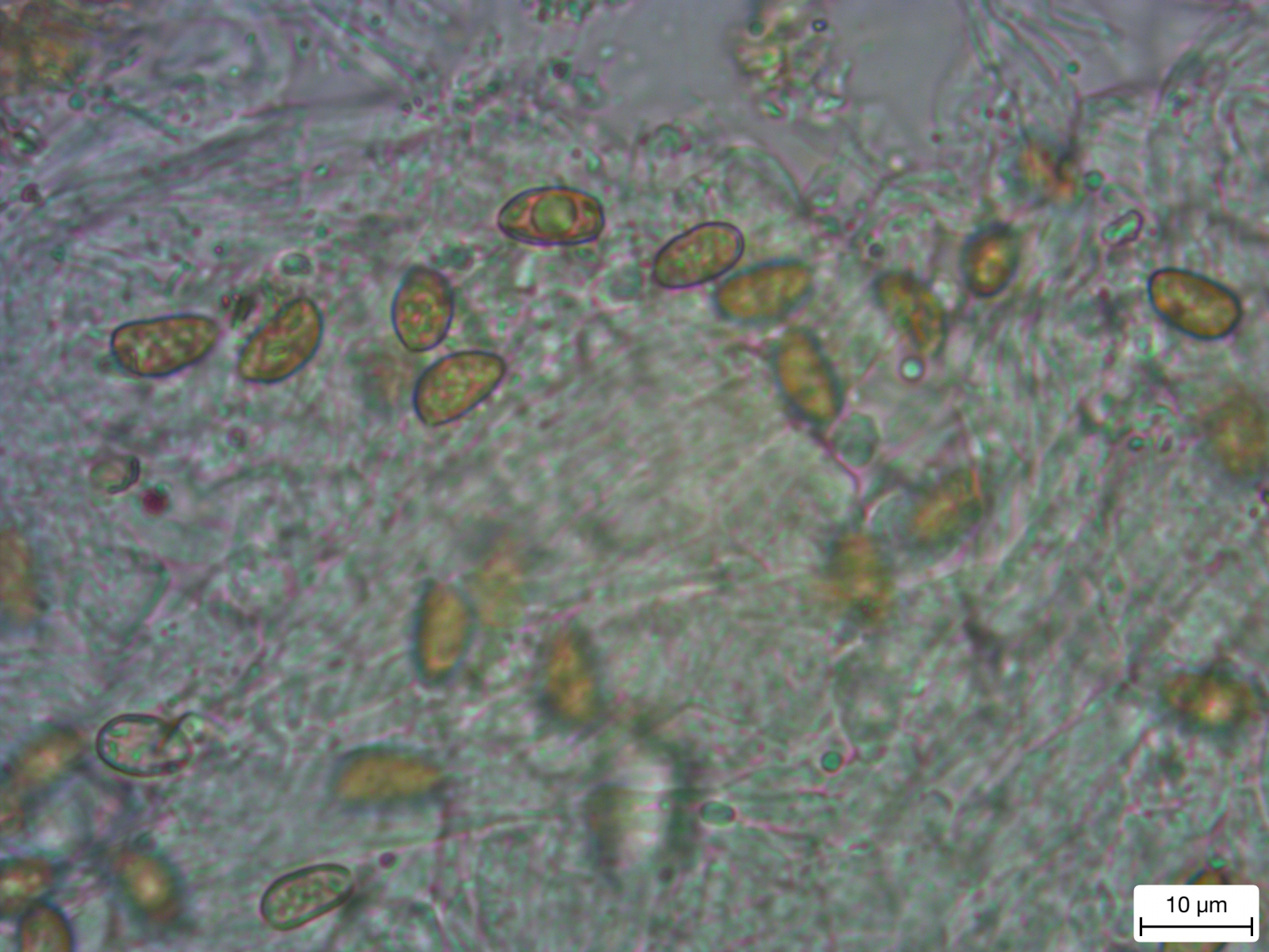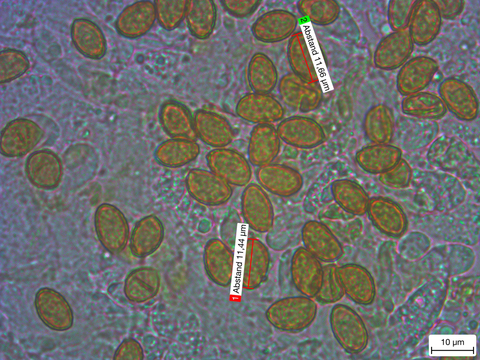 Der Geruch war spermatisch. gab es nur in der Stielspitze. Ansonsten schlanke bis flaschenförmige Cheilo- und Pleurozystiden mit Kristallschöpfen. Glattsporer.