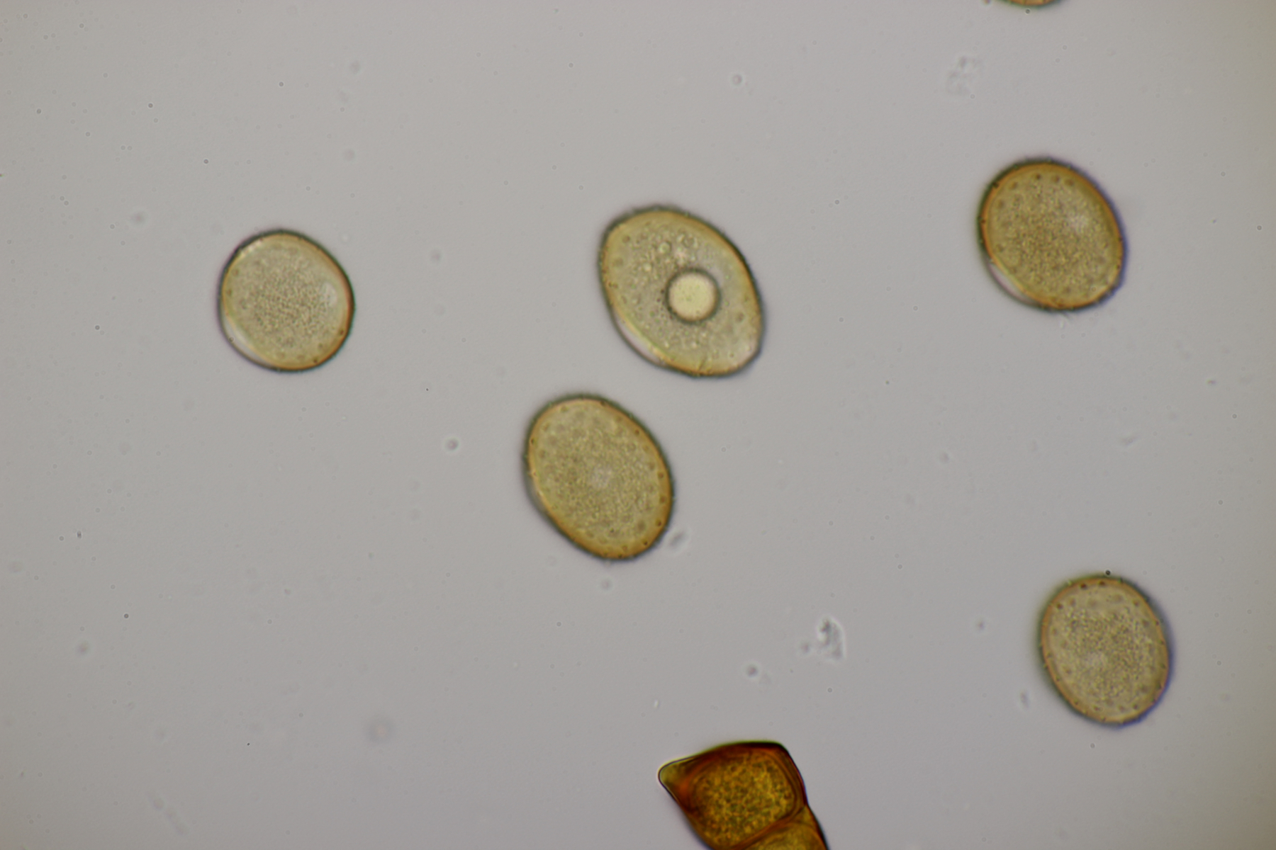 6. Russula ochroleuca. Sporenpulver IIa, Stielbasis mit KOH sofort rot, Guajakreaktion nach 10 Sekunden blau (Stiel aber sehr aufgeweicht), Eisensulfatrekation trivial