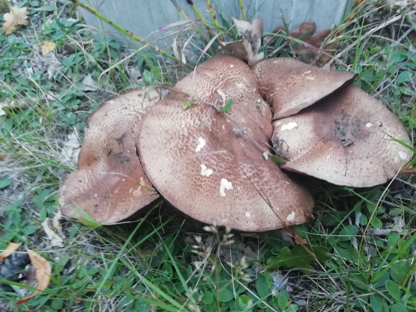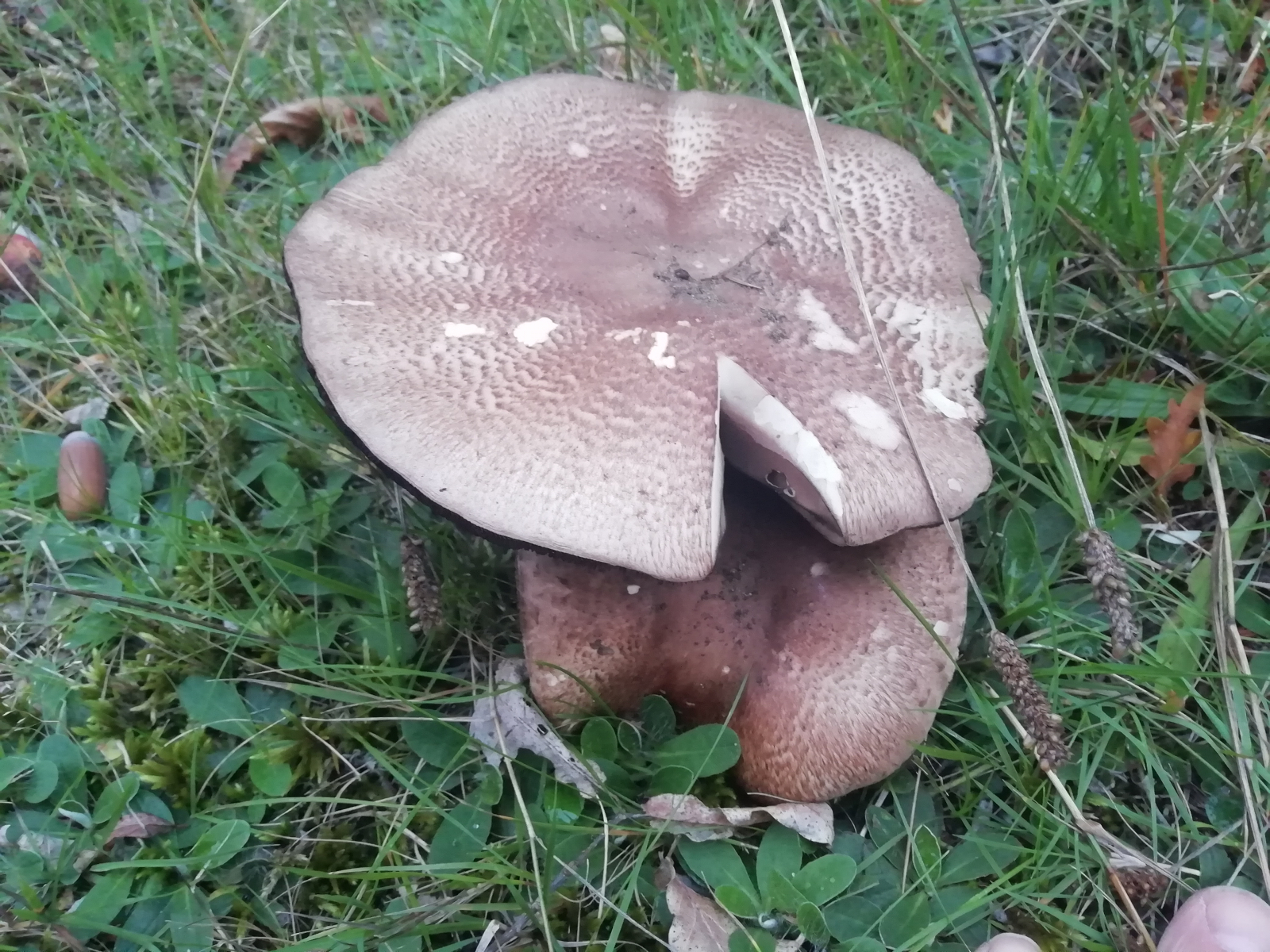 Das ist ein Champignon (Gattung: Agaricus). Da gibt es in Mitteleuropa so um die 80 Arten, einige davon auch giftig, die meisten aber vor allem Schwemetallsammler (stark mit Cadmium belastet). Die Bestimmung ist oft extrem kompliziert, und Mindestvoraussetzungen sind mehere Fruchtkörper (jung und alt) beobachten zu können, und zwar vollständige Fruchtkörper (incl. Stielbasis!) mit einem vollständigen Schnittbild (incl. Stielbasis). Auch den geruch muss man testen, das ist ein wichtiges Hilfsmerkmal.