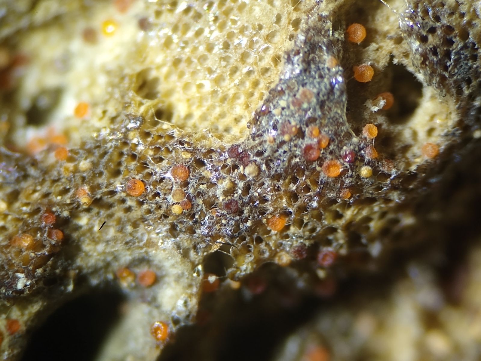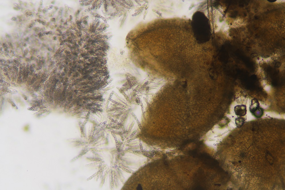 ich hatte schon eine Befall einer aus dem Hydropisphaera peziza agg. auf einem Lebermoos aus einem Tropenhaus (Siehe hier), auch Befälle auf im Wald auf Holz hatte ich schon, aber dieser Fund vom 27.09.2020 war wieder ein für mich neues Substrat. In diesem Fall wuchs die Hydropisphaera peziza agg. auf einem alten Porling.