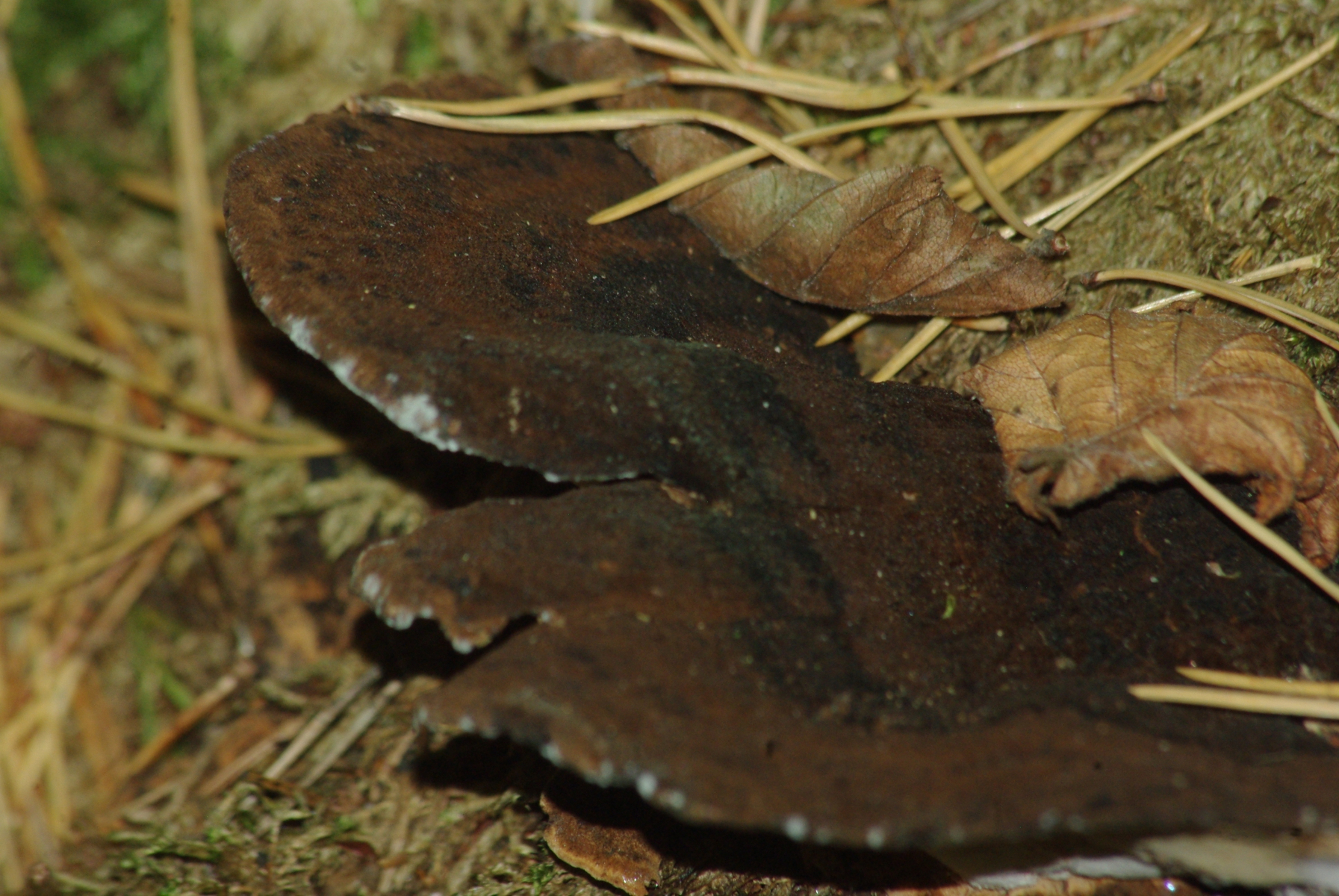 Bei Pilz 2 komme ich zu Ischnoderma benzoinum, dem Benzinporling :D, die größten Exemplare bringen es auf über 20 cm Spannweite. Habe ich gerade ausgelegt zum Aussporen. Was anderes kommt hier wohl nicht in Frage?