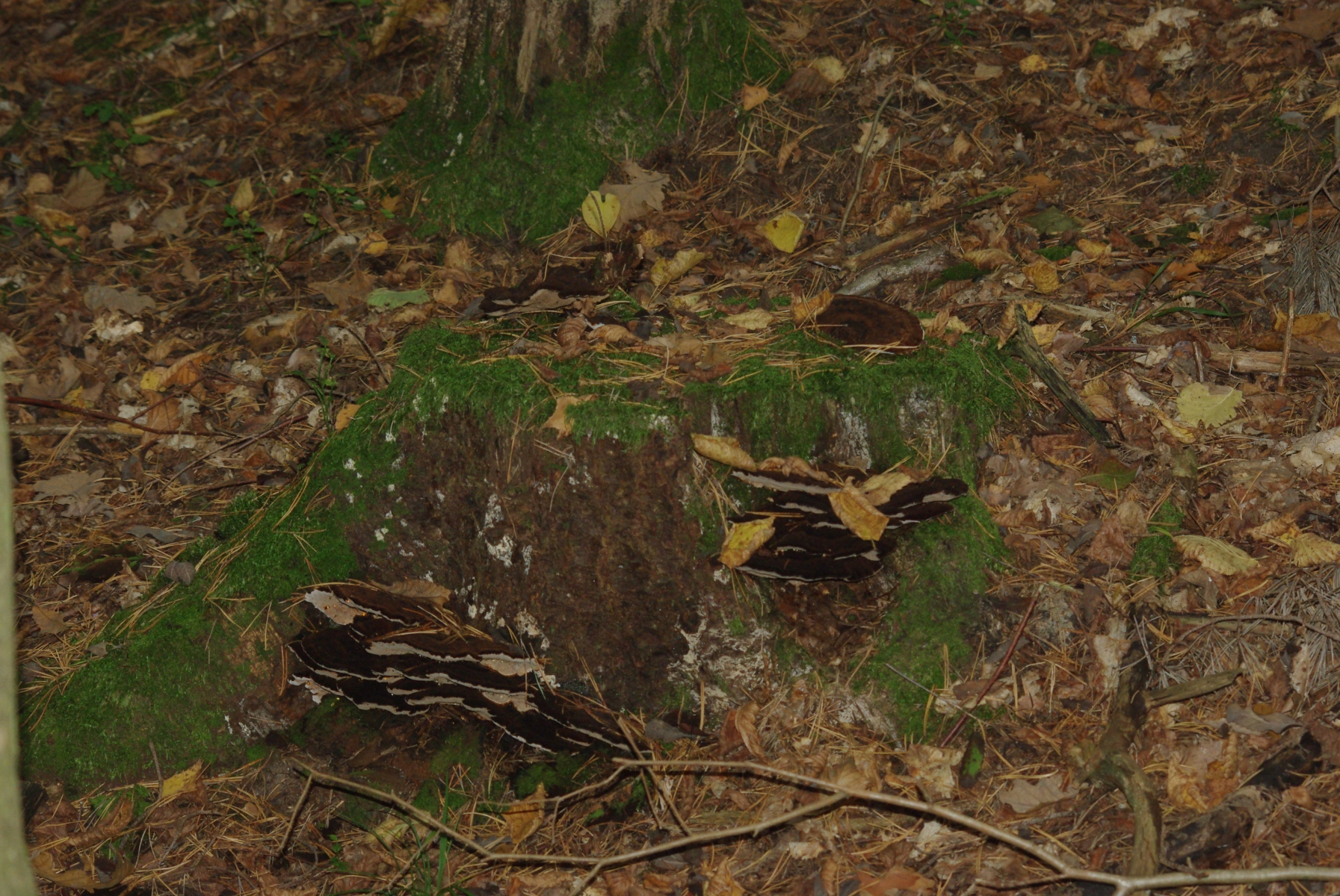 Der scheint hier relativ selten zu sein, oder unbekannt, man findet kaum Fotos oder Angaben dazu aus Litauen. Die polnische Wikipedia meint, er sei selten, eine lettische Pilzseite meint hingegen "relativ häufig anzutreffen [...] meist auf Kiefer". Es handelt sich um Bilder von zwei verschiedenen Stubben ca. 50 m voneinander entfernt, ich impliziere, dass es sich bei beiden um die gleiche Art handelt.