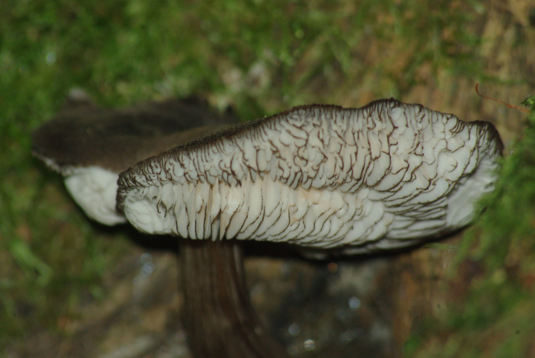der erste Pilz müsste Pluteus atromarginatus, der schwarzscheidige Dachpilz, sein (nach Durchsicht dieses Threads hier im Forum Schwarzschneidiger Dachpilz (Pluteus nigrofloccosus)? sollte es keine Alternative geben). Sporenfarbe ist ein ziemlich dunkles Ocker.