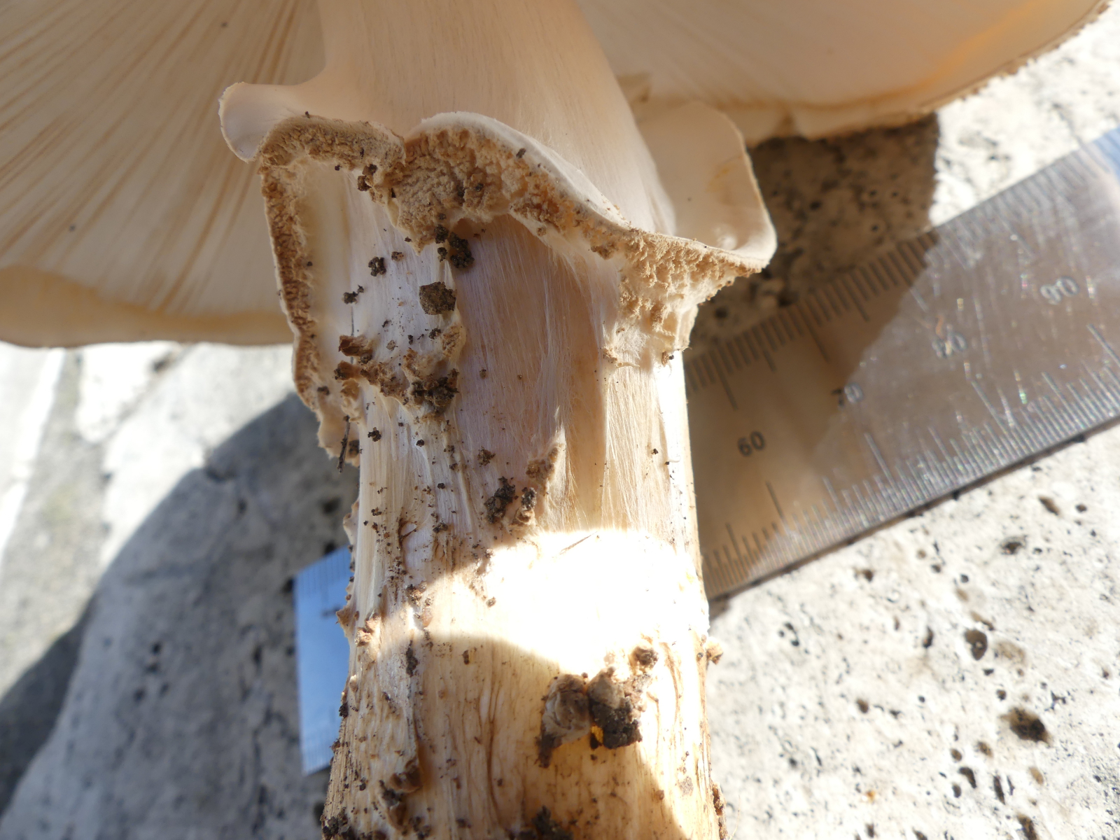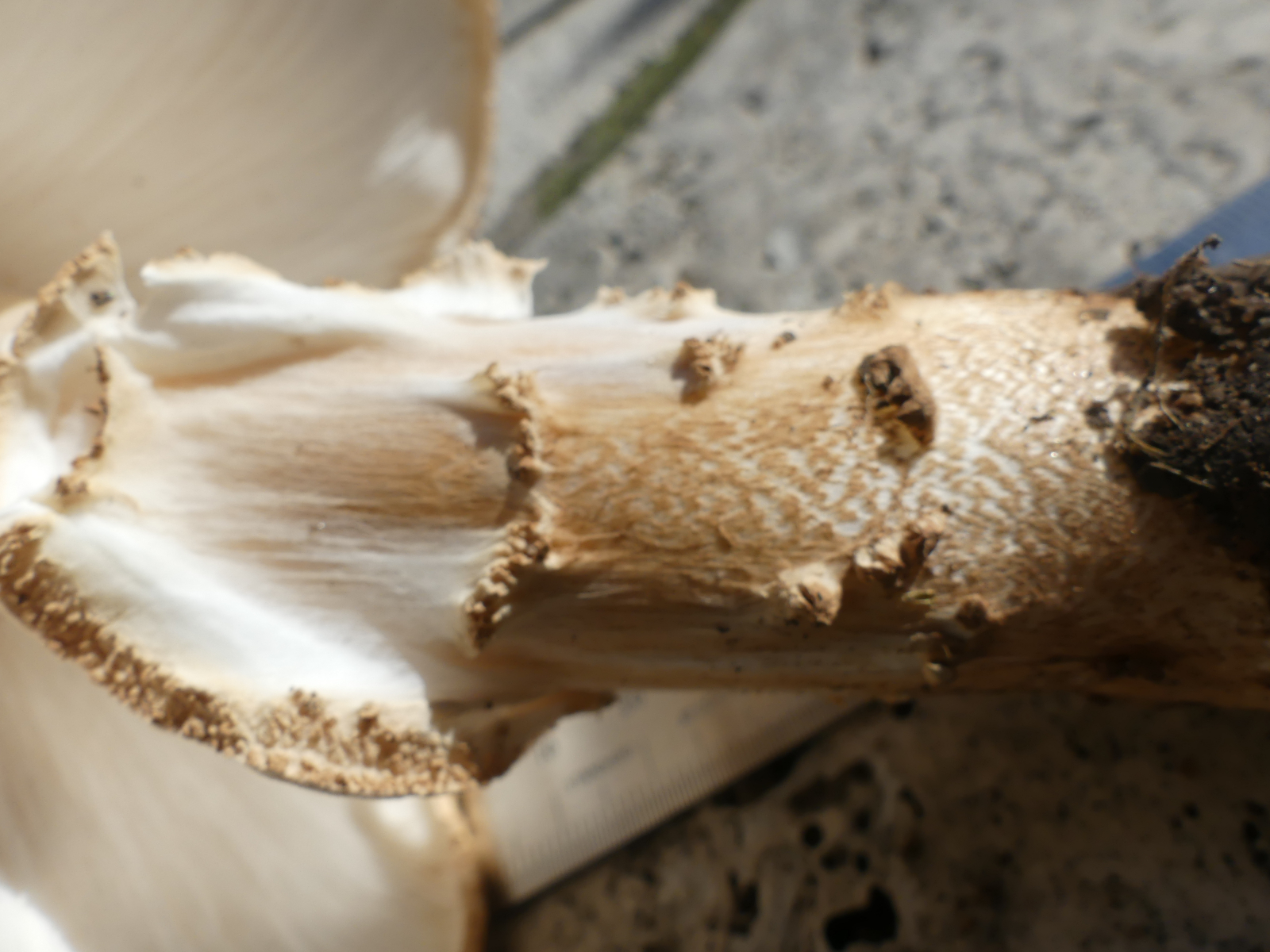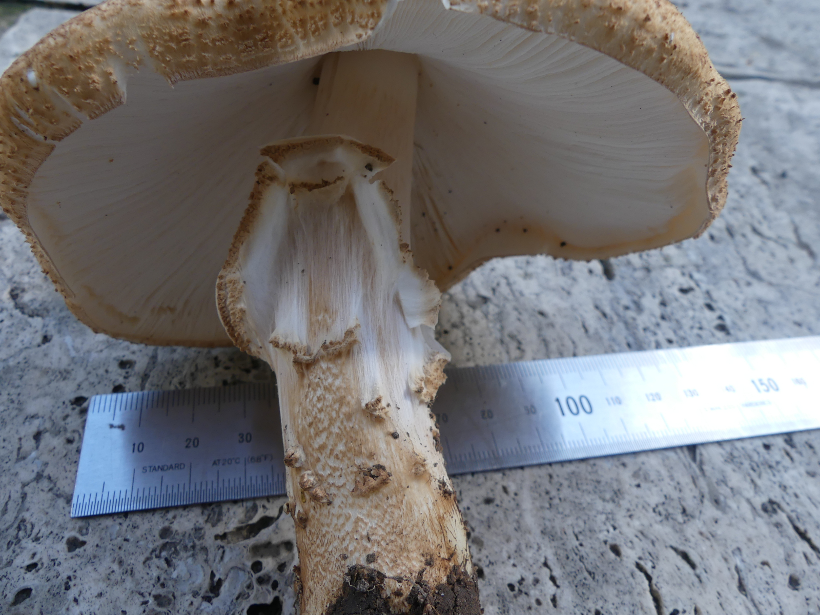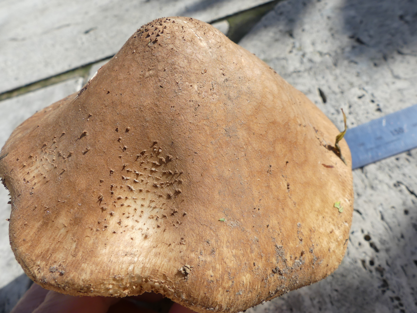 Irgendwie erinnert mich mich der an die spitzschuppigen Schirmlinge, die ich letztes Jahr im eigenen Garten gefunden habe. Sind die typischen Stacheln vielleicht durch den starken Regen gestern abgewaschen worden?