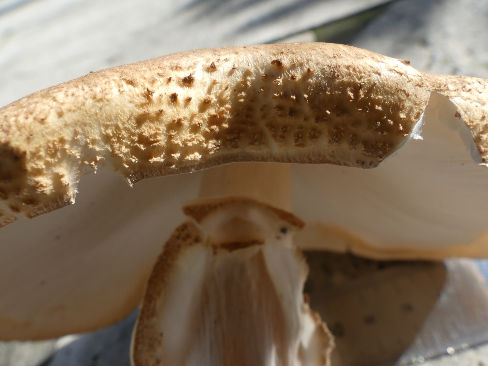 Gerade bin ich von meiner Pilztour zurück gekommen und habe dieses Einzelexemplar am Rand einer Wiese zwischen zwei Apfelbäumen zur Bestimmung mitgenommen. Geruch nur schwach wahrnehmbar, unangenehm, etwas an Kartoffelboviste erinnernd.