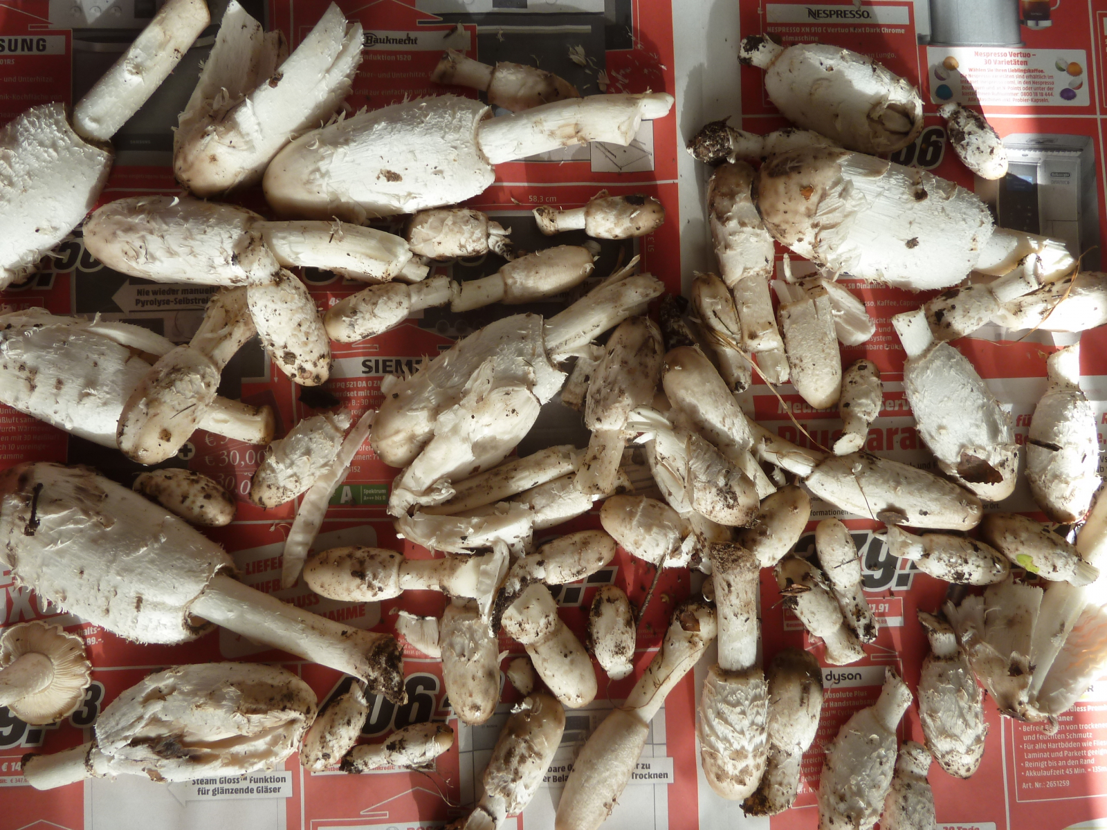 Dafür habe ich mehrere Glucken gefunden und so etwa 30 - 40 Schopftintlinge in Bestzustand. Obwohl der Geruch der Schopftintlinge nicht gerade lecker ist, schmecken sie mir in scharf gebratenem Zustand richtig gut.