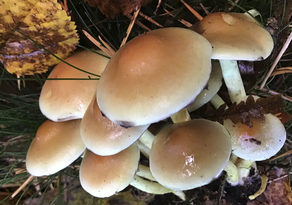 Für mich sind die Pilze auf den Fotos 1 und 2 Ziegelrote oder Grünblättrige Schwefelköpfe, die auf dem Foto 3 sichere Grünblättrige Schwefelköpfe,