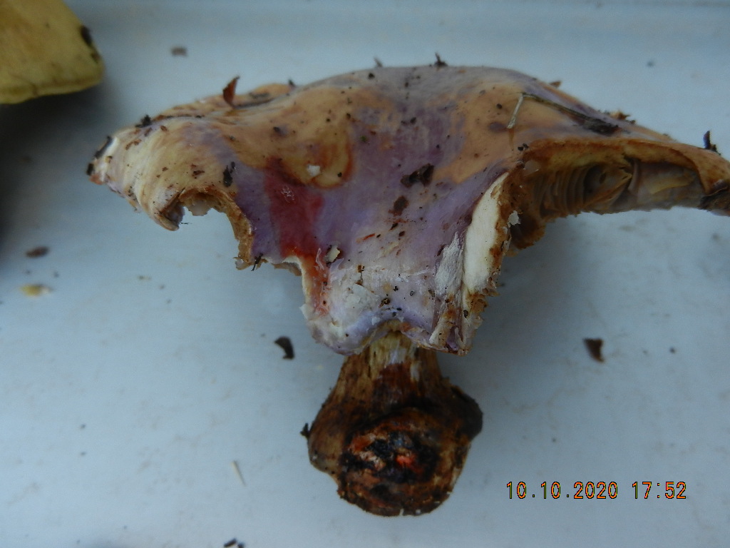 zwar schon ältlich, aber die KOH-Reaktion auf Hut- und Knollenrand funktionierte noch. Dieser rosafarbene Strich links auf dem Hutrand entstand durch KOH.
