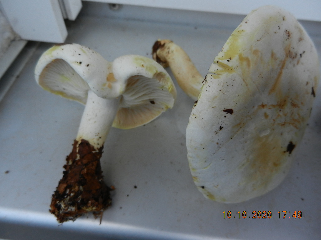 zwar schon ältlich, aber die KOH-Reaktion auf Hut- und Knollenrand funktionierte noch. Dieser rosafarbene Strich links auf dem Hutrand entstand durch KOH.
