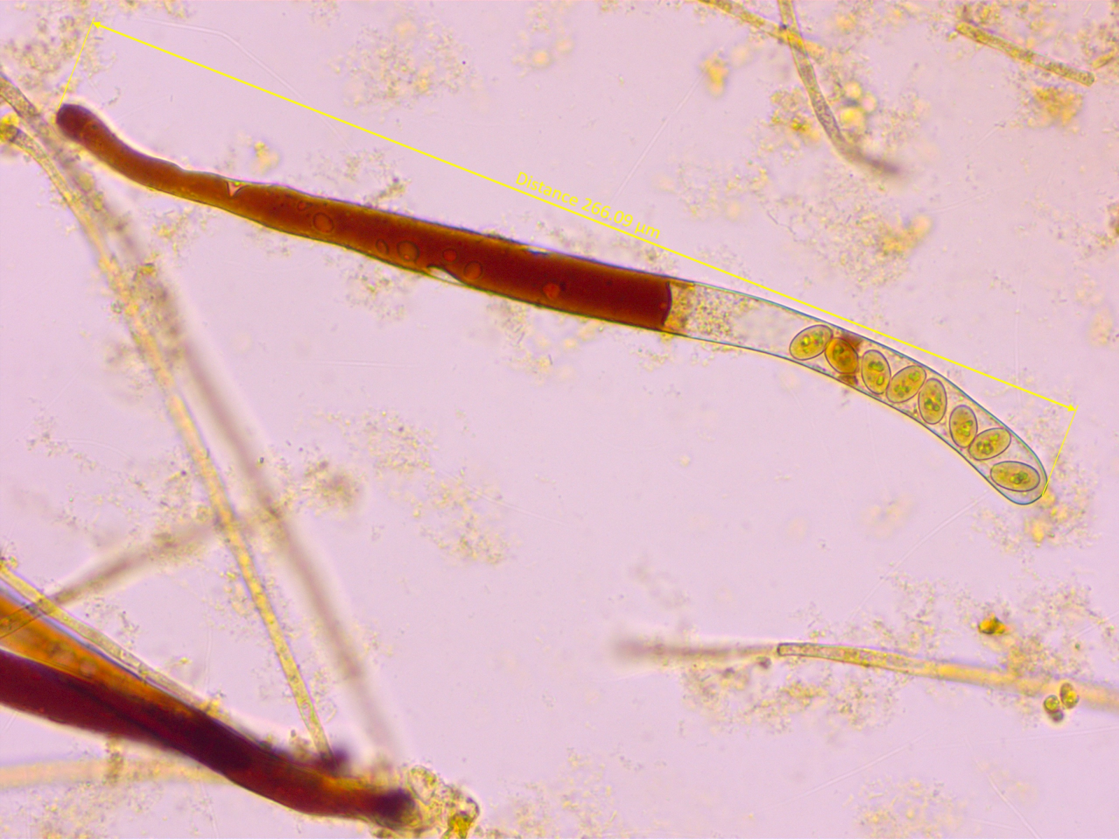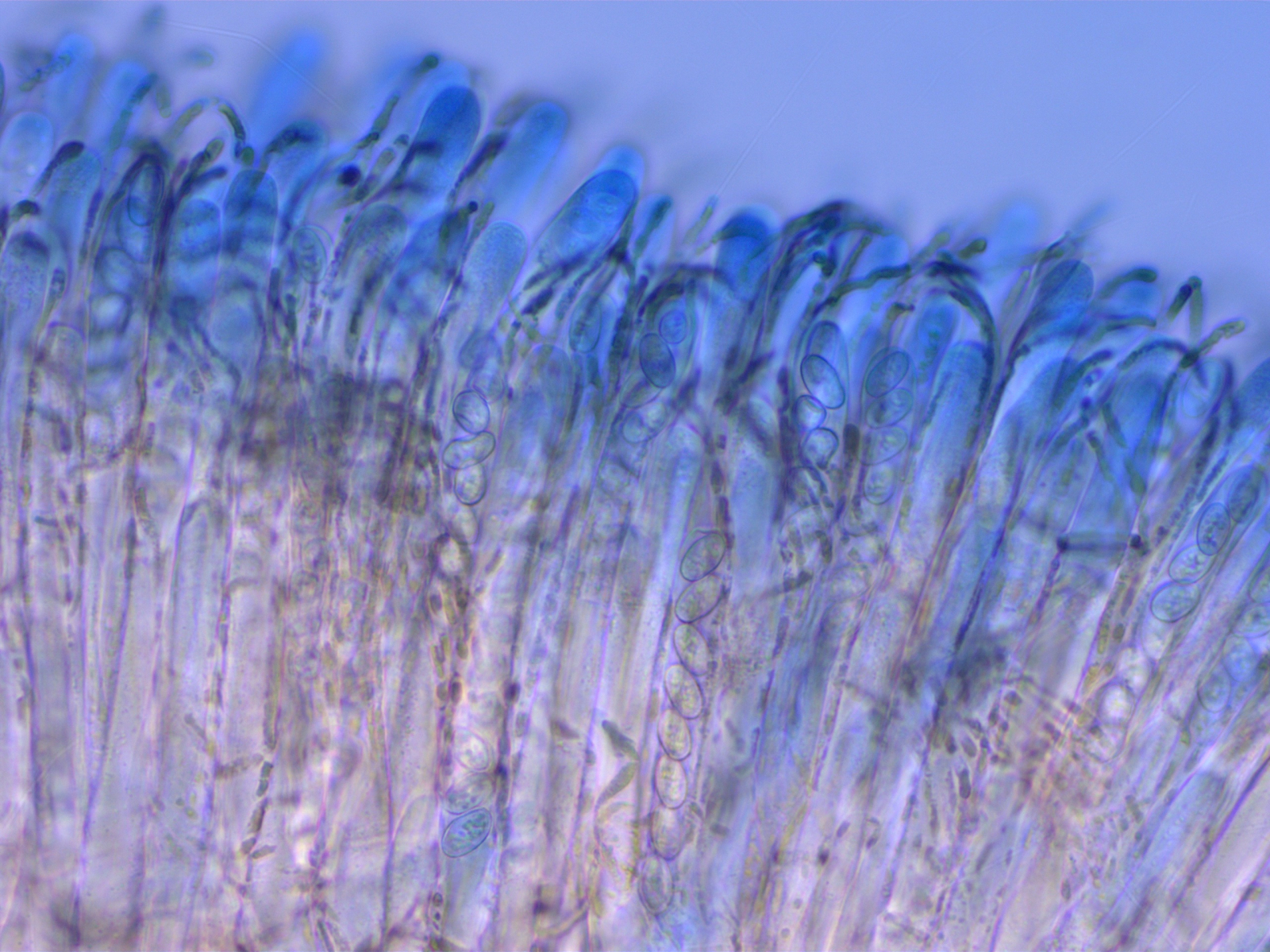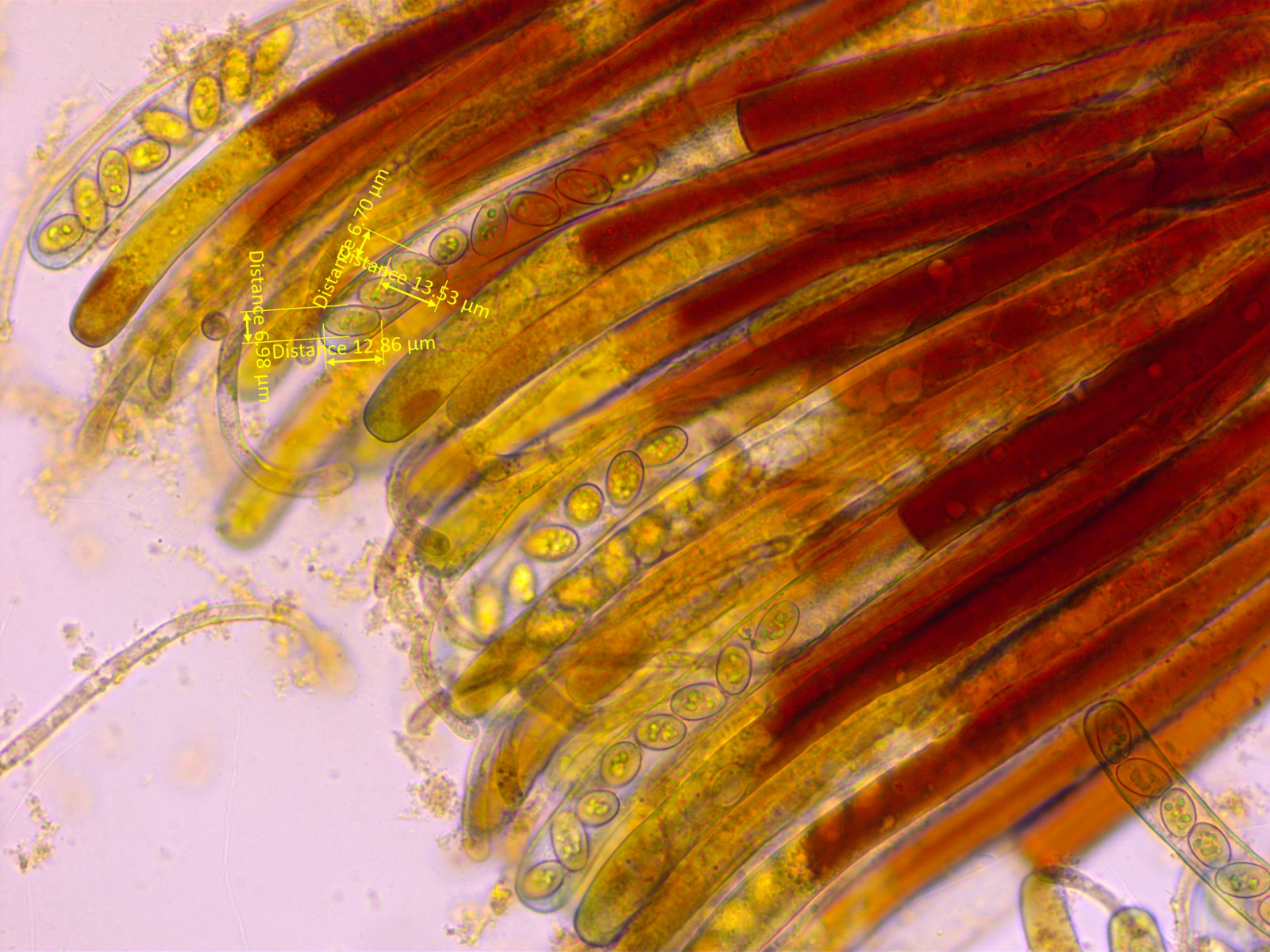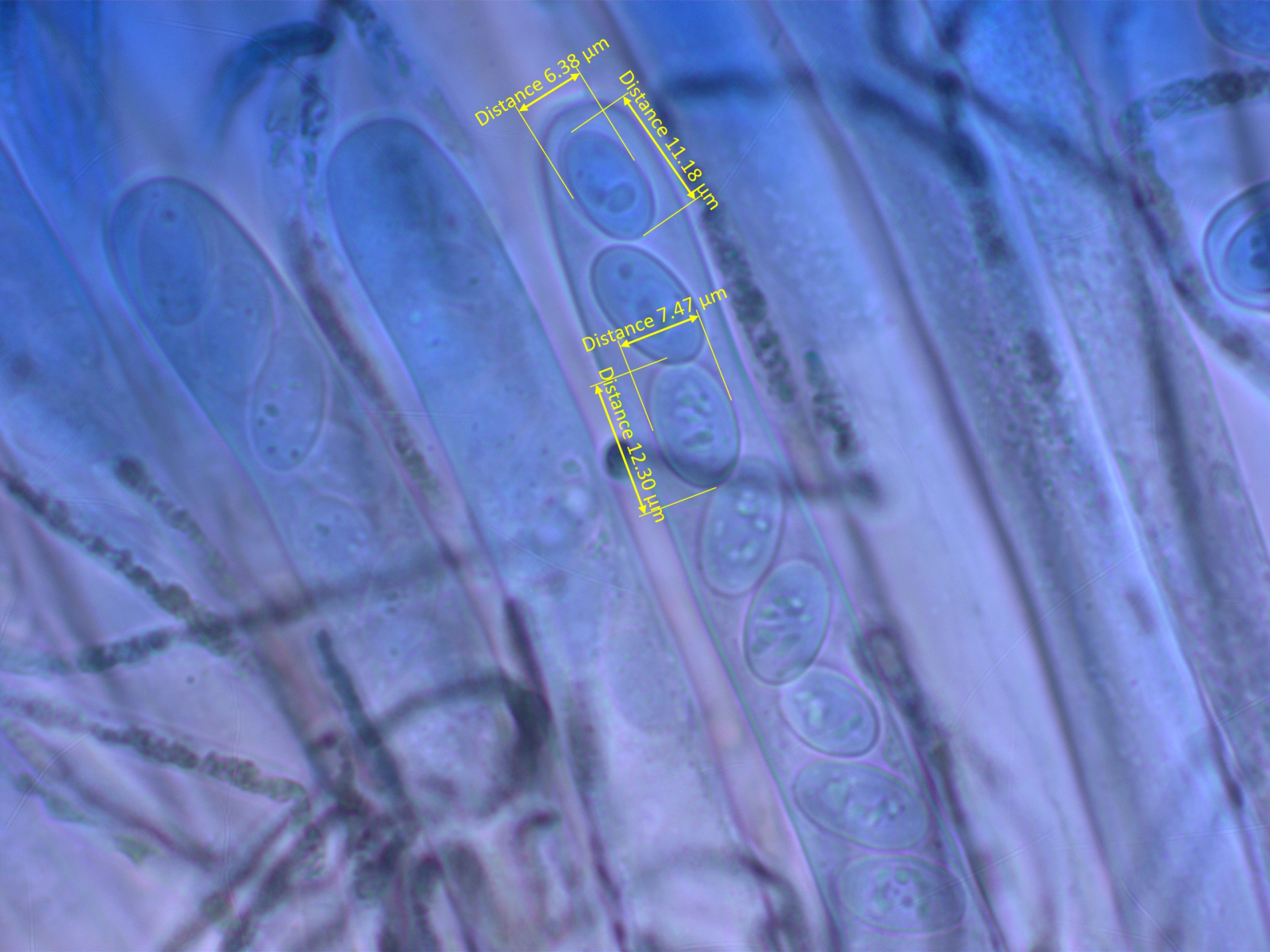 In meiner spärlichen Asco-Literatur finde ich keine Art mit so kleinen Sporen (11-13.5 x 6.5-7.5 µm).