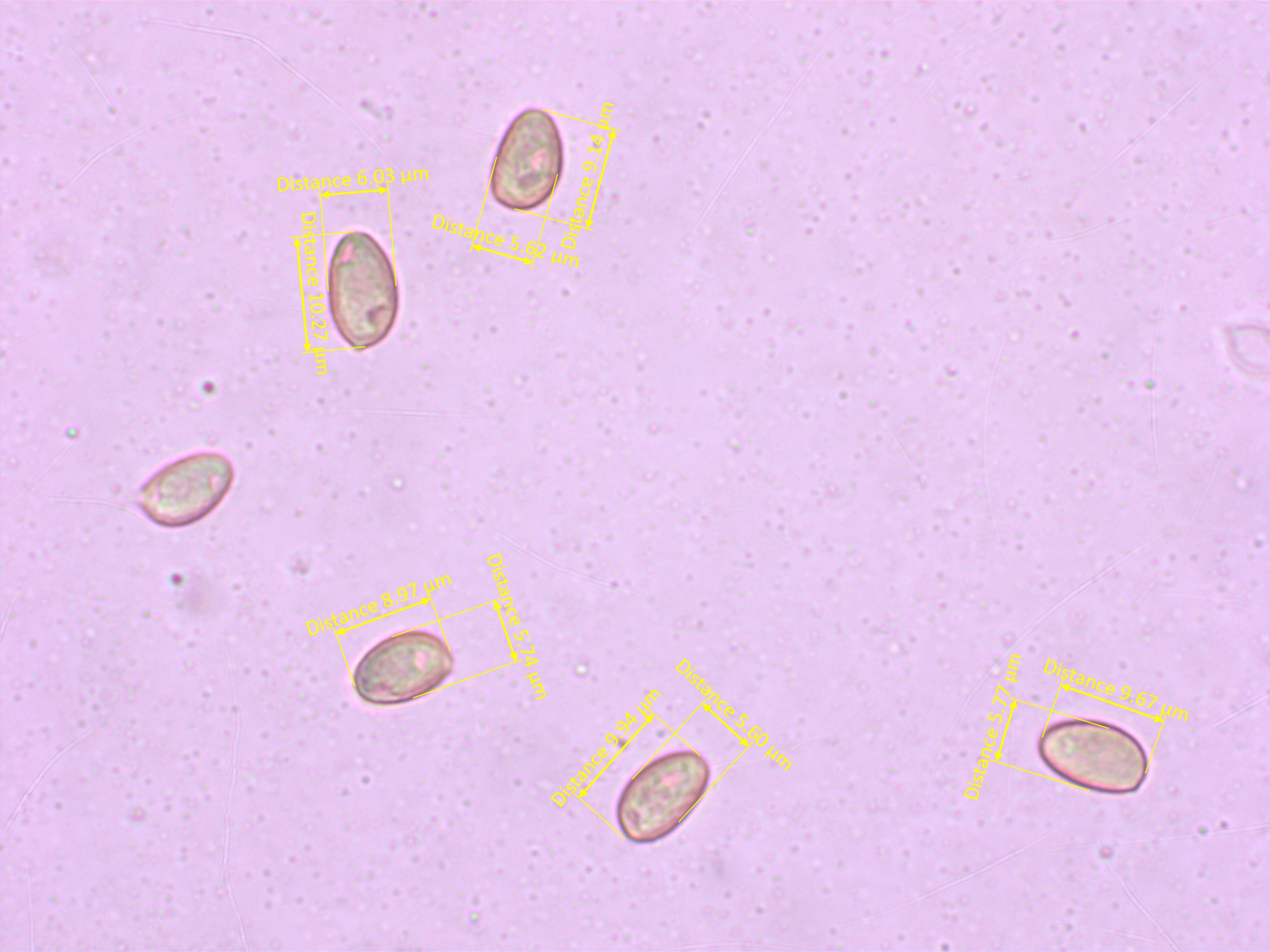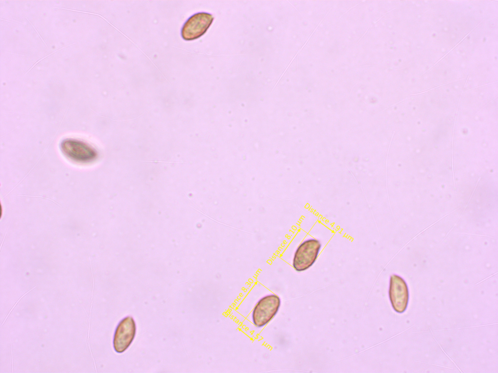 Aber die Sporen sind durchwegs unter 5 µm breit, darum halte ich ihn trotz der hellen Farben für hemitrichus.