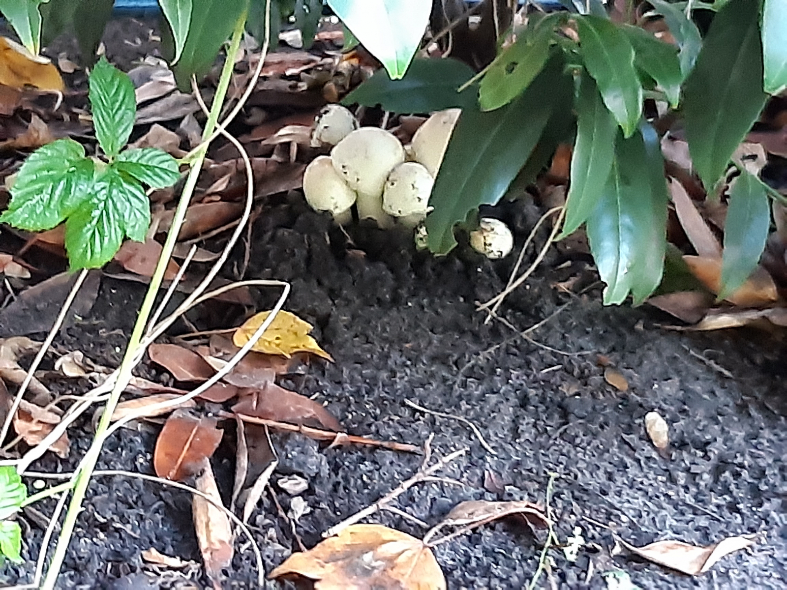 Pilz 1: Davon sind einige, sehr dicht zusammenwachsend im Garten