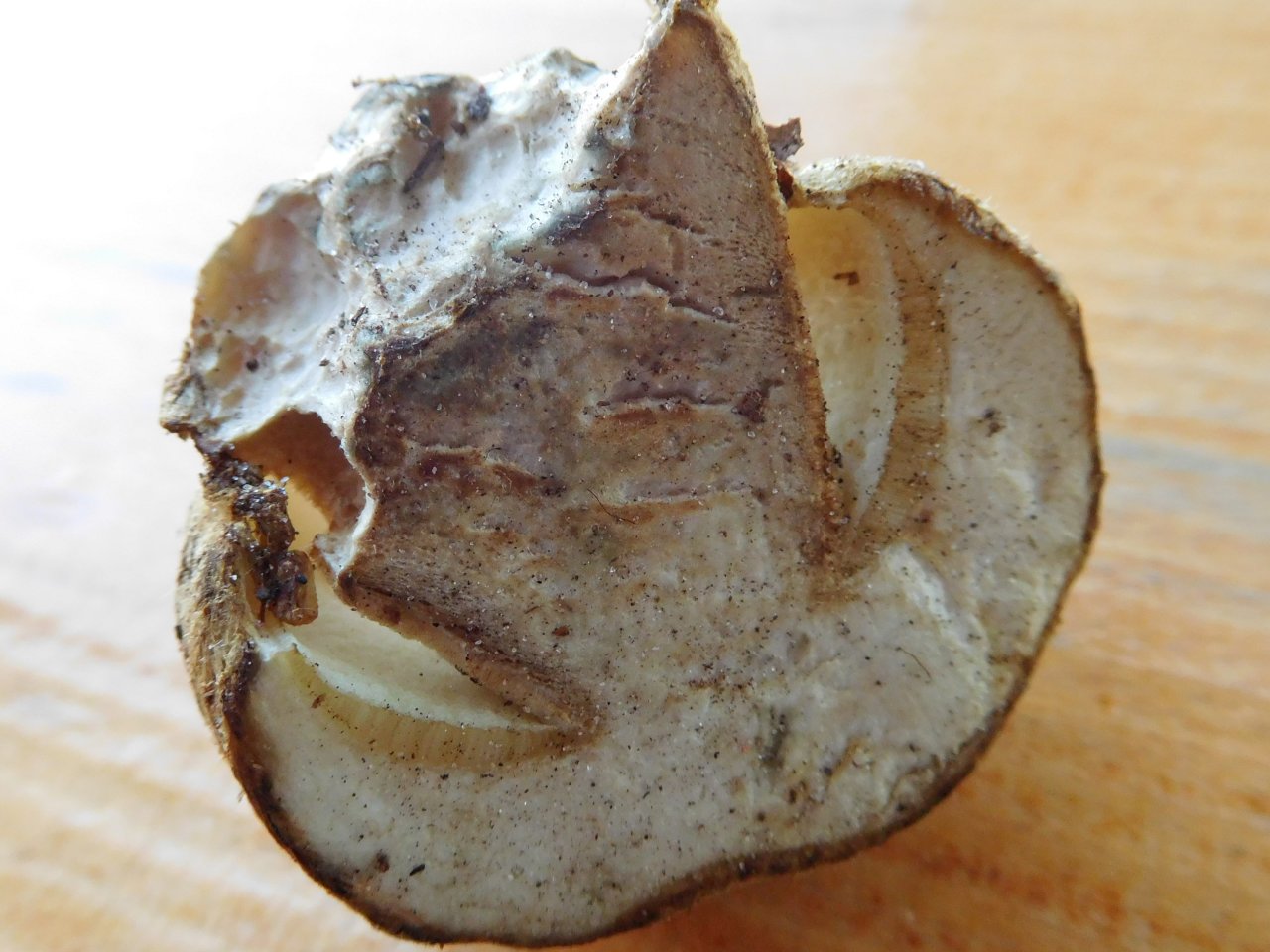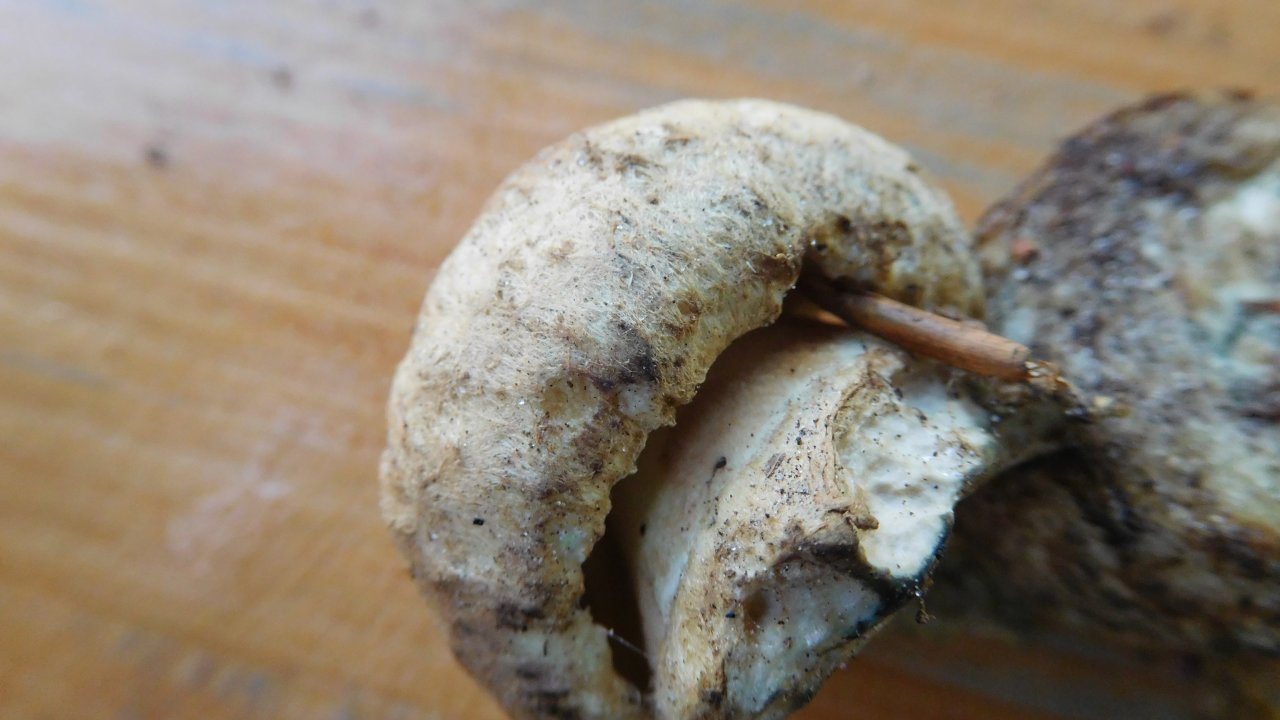 Das würde die filzige Oberfläche von Hut und Stiel erklären! Nur der ist im Anschnitt nicht blau geworden. Aber ich habe gerade gelesen, der muß das nicht immer machen.