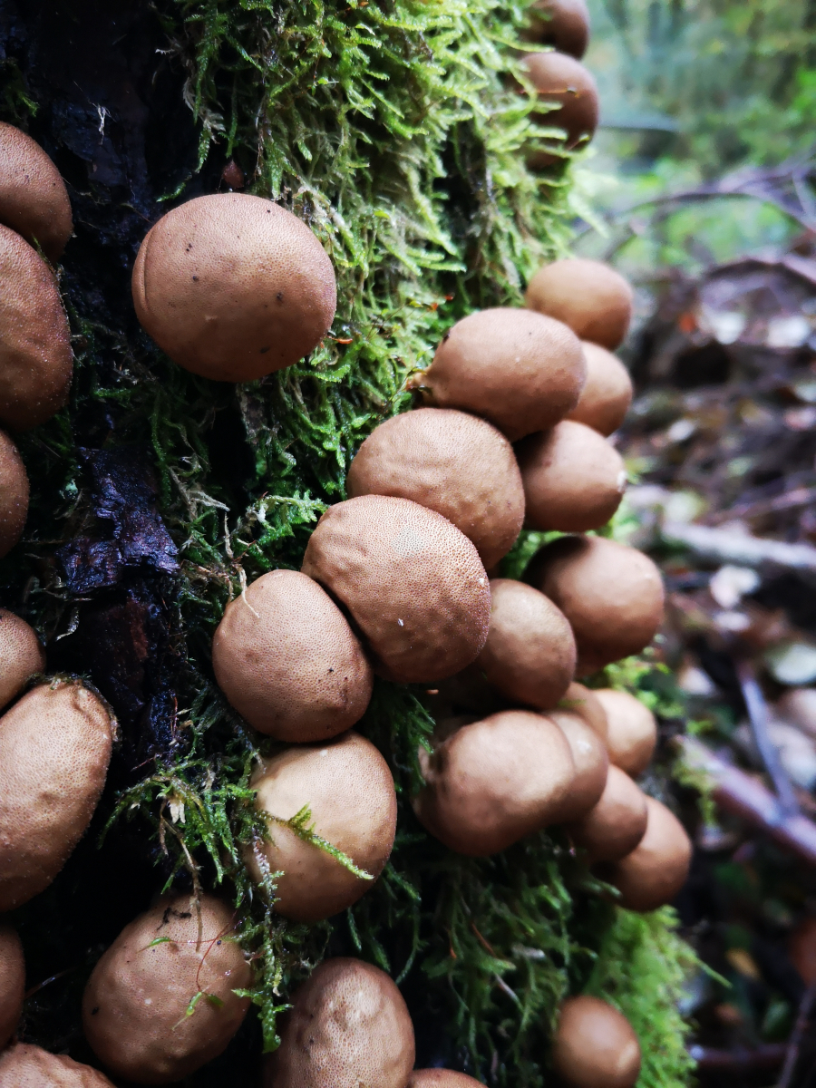 Direkt am Bach, auf altem Buchenstammholz und eher eine absonnige Lage. Ansonsten Mischwald.