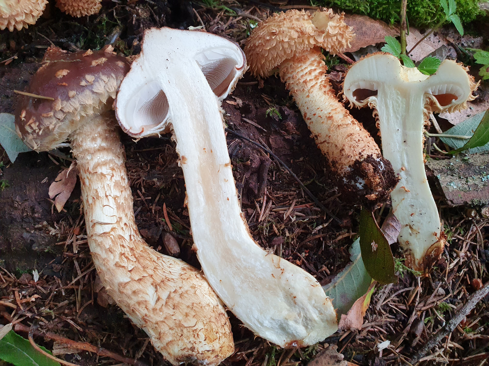 Es macht hier auch den Eindruck, dass die Schüppchen am Hut teilweise abgewaschen sind. Das passiert beim Sparrigen Schüppling ja eigentlich nicht.