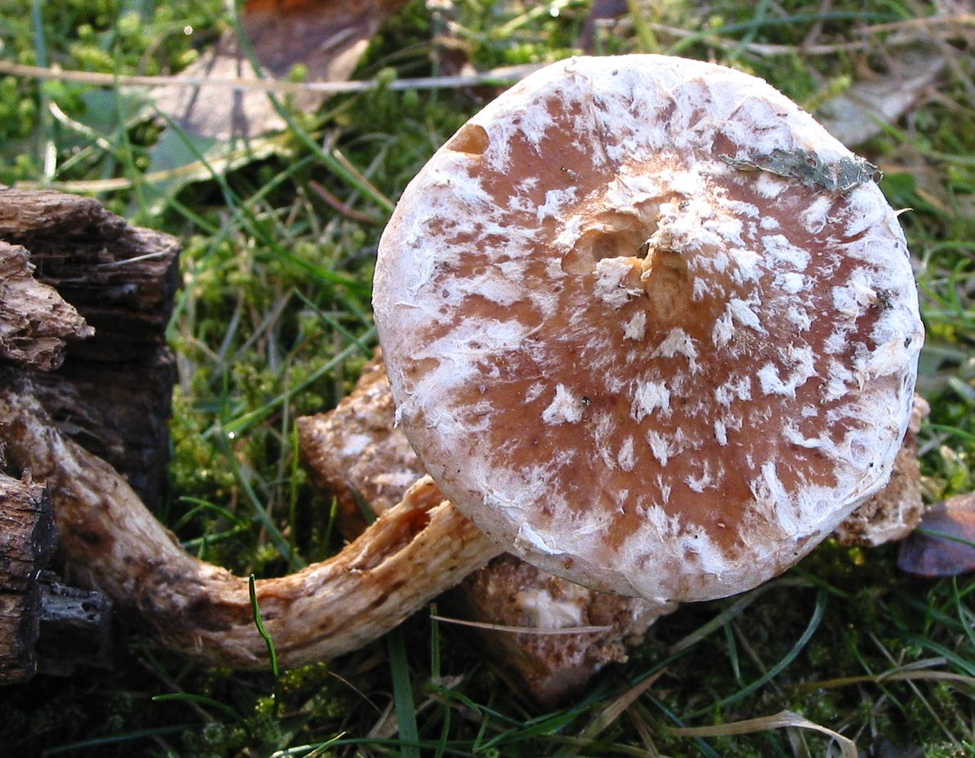 Es macht hier auch den Eindruck, dass die Schüppchen am Hut teilweise abgewaschen sind. Das passiert beim Sparrigen Schüppling ja eigentlich nicht.