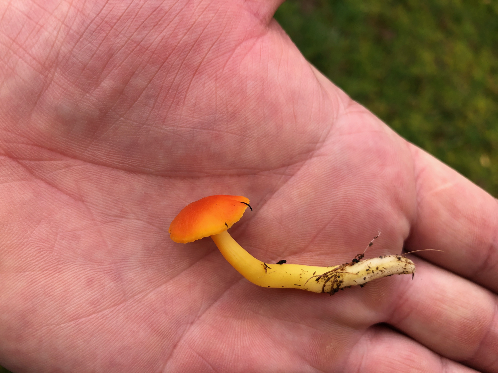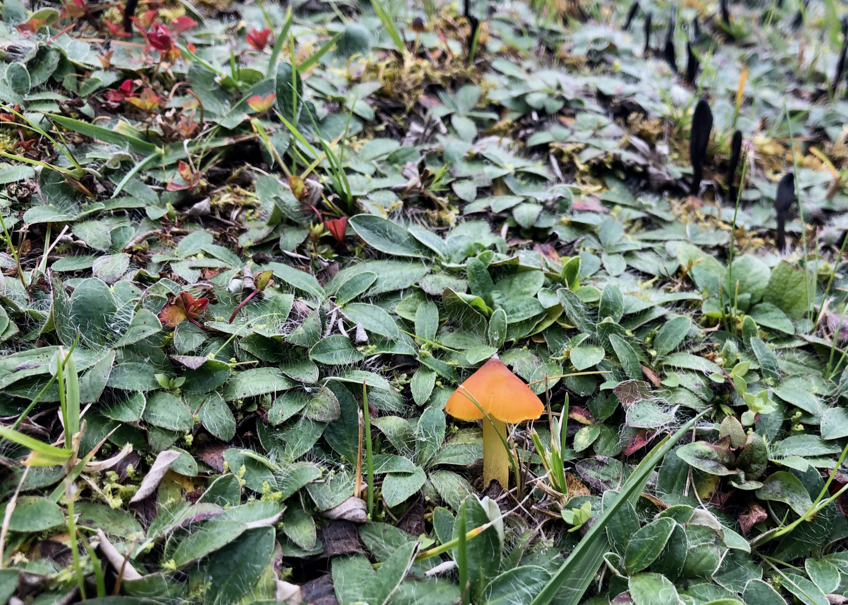 Auf dem Weg zur Saftlingswiese zwischen Habichtskraut gab es kegelige gelbe schwärzende Saftlinge