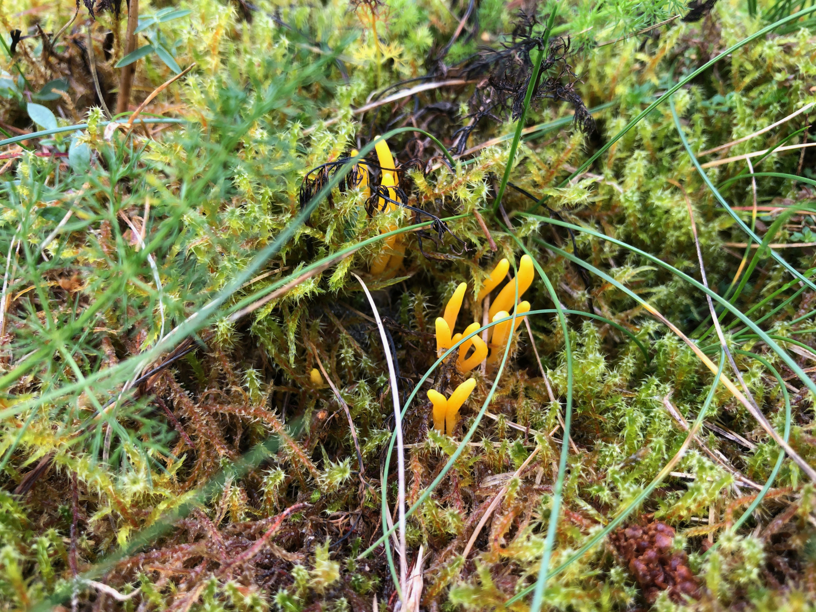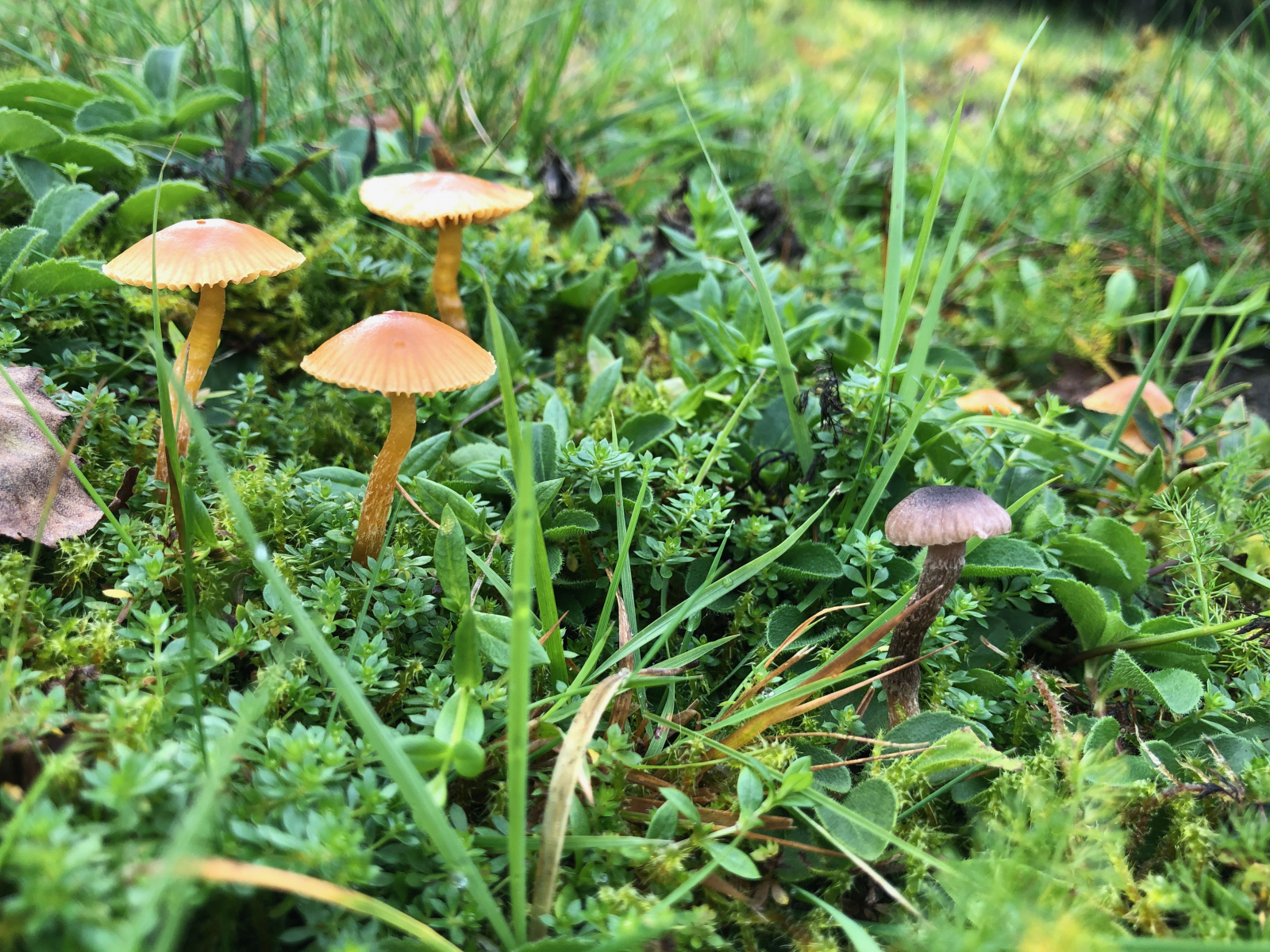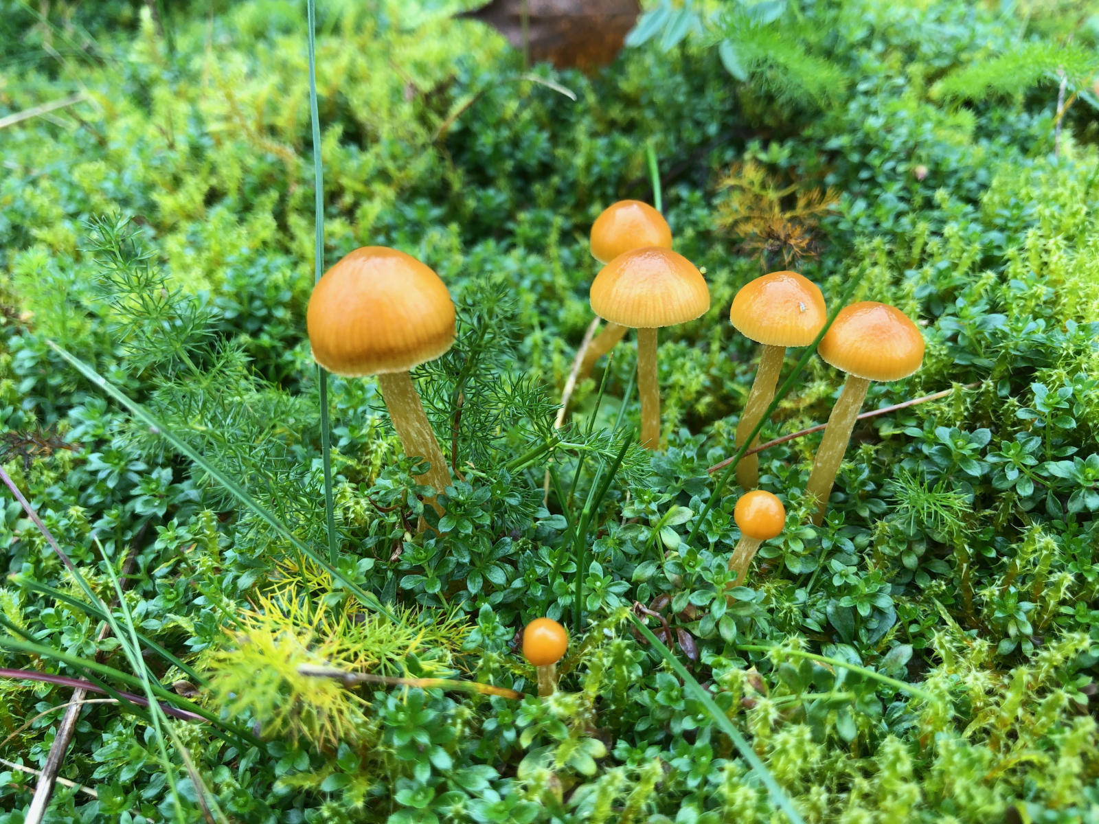 Auch sehr hübsch, edit: vielleicht irgendwelche Gestiefelte Häublinge - Galerina pumila. Davon gab es so viele, dass man sehr aufpassen musste, sie nicht zu zertreten.
