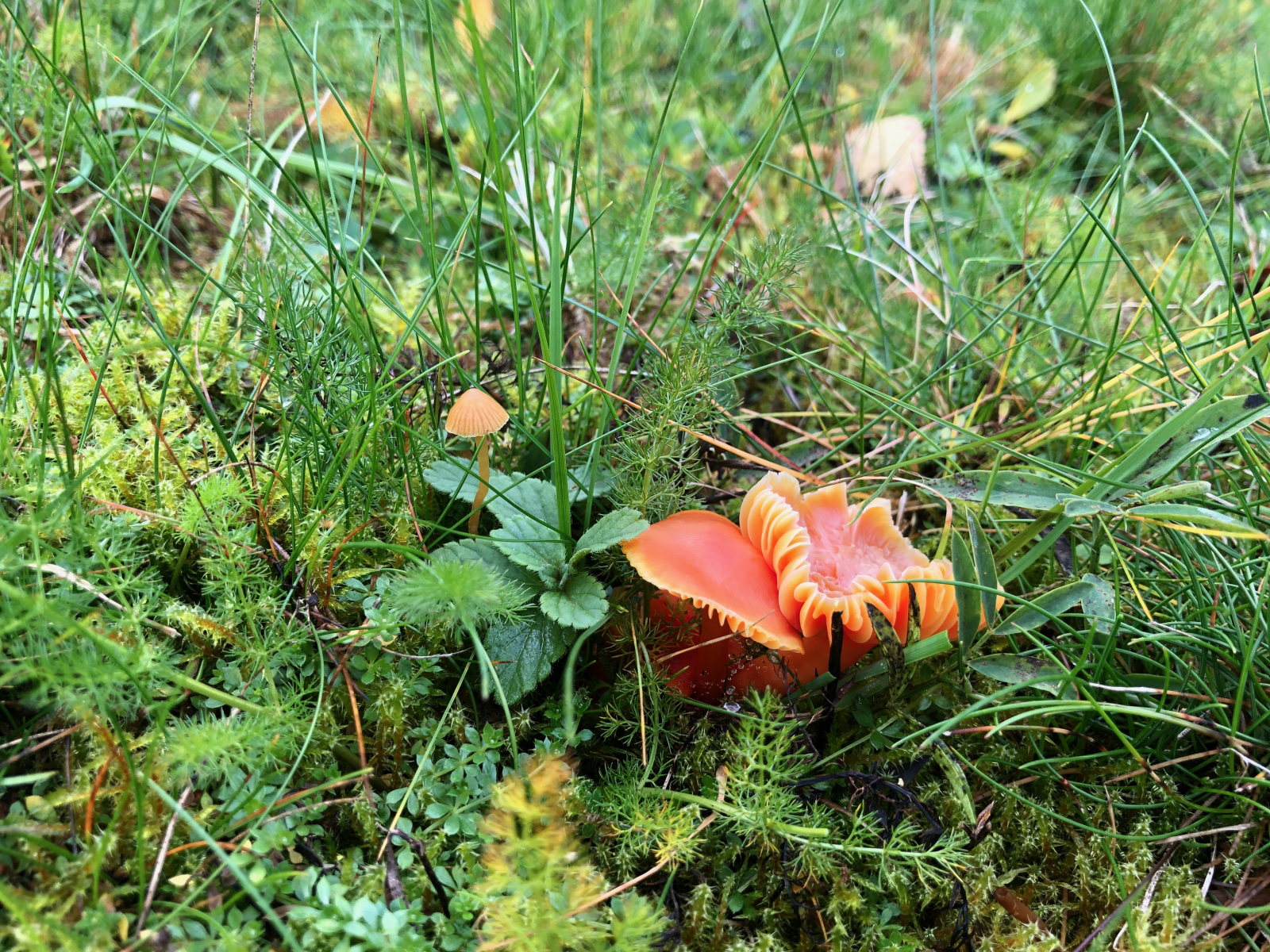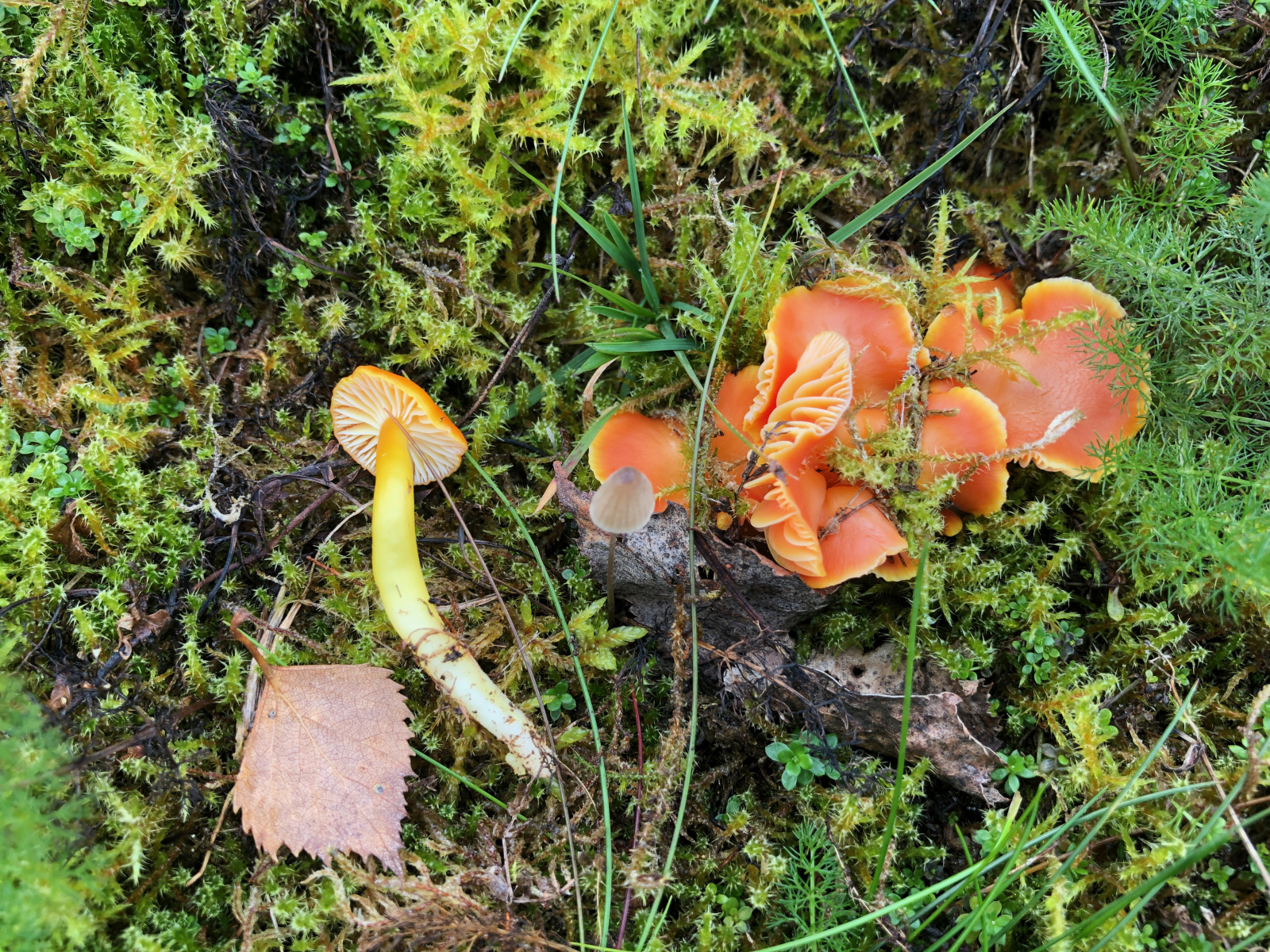 Gelbe Saftlinge gab es auch. edit: diesen habe ich als Gelben Saftling Hygrocybe chlorophana bestimmt